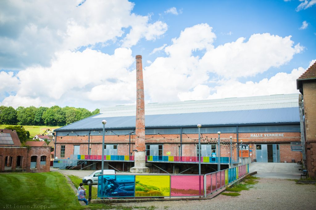 Déjà à notre arrivée, le site étonne. Des grands bâtiments industriels, mêlés à des restes de friches, entourent le parking. On regarde autour de nous : Centre International d’Art Verrier, Halle Verrière, Musée du Verre, flûte, c’est quoi qu’on doit visiter dans tout ça ? Heureusement nous avions rendez-vous avec une guide qui allait nous éclairer sur le fonctionnement de tout ces bâtiments. En attendant, on en profite pour faire des photos des jolies façades… (avec une ambiance un peu urbex, on a bcp aimé cet univers !)