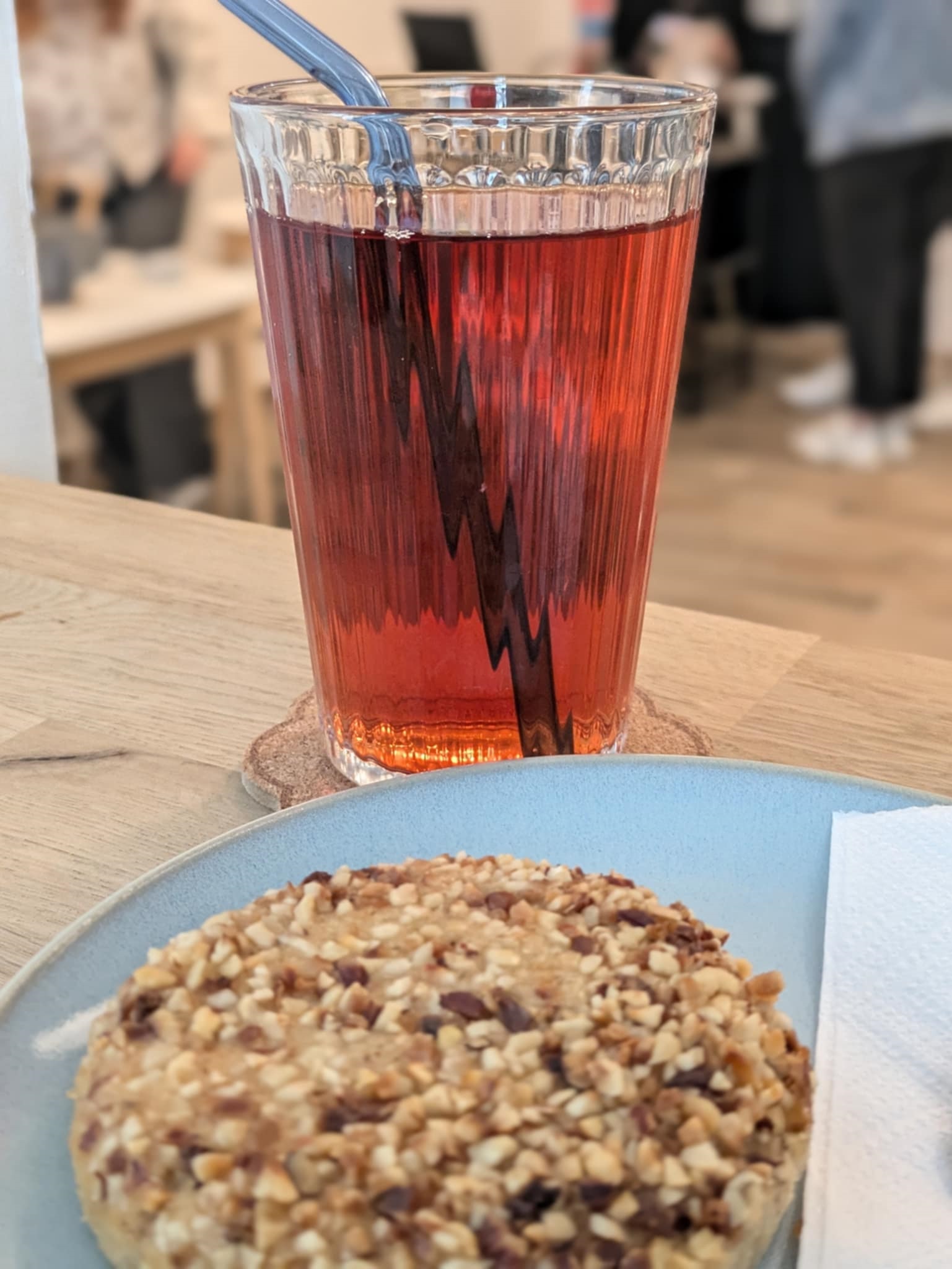 À la carte de Oh my cat ! Coffee, on y trouve des boissons chaudes classiques, des smoothies, des ice tea. Pour les petits creux, Lauraline prépare des bagels et pour les becs sucrés, on y trouve des cookies, des muffins, et mon coup de cœur, le moelleux à la noisette ! Lauraline étant seule pour assurer les entrées, le service, les préparations, et les départs, donc allez-y vraiment en mode chill et prenez votre temps ! La meilleure option pour moi, c’est un moment papote entre copines ou amoureux, ou encore en solo avec un bon livre, avec les chats comme un bonus à ce chouette moment !