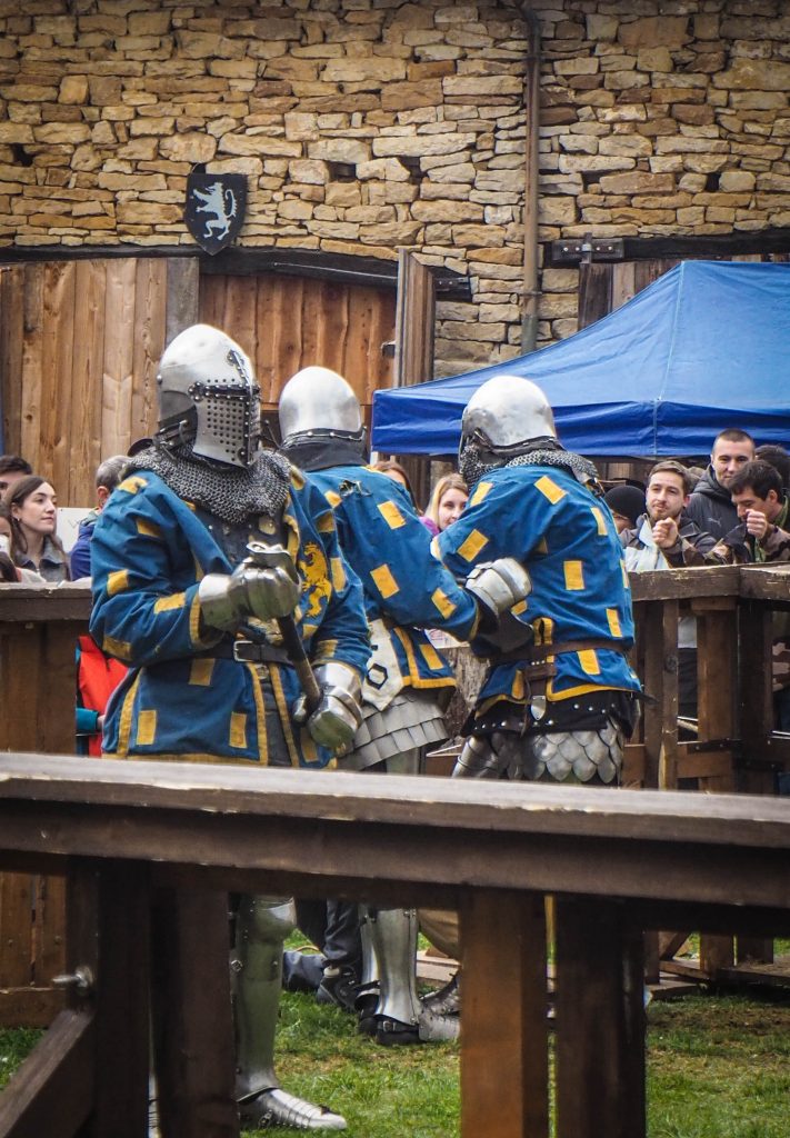 Ma première rencontre avec le béhourd a eu lieu fin mars 2025, un peu par hasard. On me propose de venir à un tournois dans un château dont je n’ai jamais entendu le nom, forcément, ça pique ma curiosité de blogueuse tourisme régionale ! C’est donc la première fois que je me rendais dans ce château du Doubs, le château de Montby, une petite forteresse entre Villersexel, Montbéliard et Baume les dames. Un bel édifice extrêmement bien restauré grâce à l’association « les amis du château de Montby » qui a l’air très active sur le terrain (d’ailleurs, si vous avez envie de prêter main forte, je suis sûre qu’ils recherchent toujours des volontaires !). Ce jour là, la foule se presse au centre de la cour, autour d’une « lice », et à l’intérieur, 10 mecs en armure armés de hache, de masse, d’épée, qui se tapent dessus. L’ambiance est bon enfant, chacun supporte son équipe lors de ce tournois pas comme les autres. Je suis un peu dubitative au départ (j’aime pas spécialement voir des gens se taper dessus), et au fur et à mesure, je m’intéresse aux règles, j’observe les techniques, j’admire les équipements et l’endurance des combattants. Je reste près de 3 heures malgré la fraîcheur ambiante pour voir la fin du tournois.