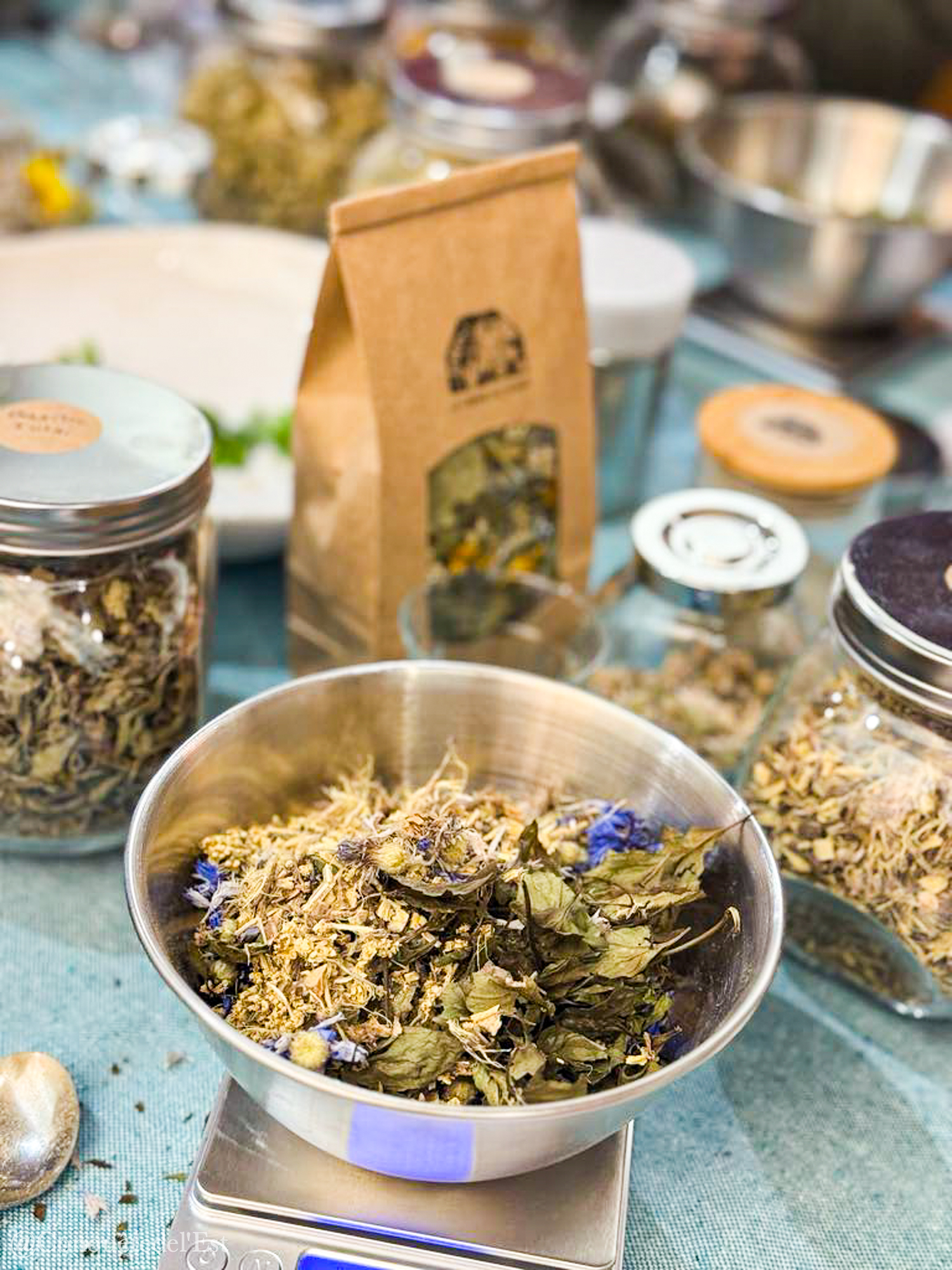 Puis, nous allons gouter des petits shots d’infusion afin de reconnaitre de nouveau les plantes. Nous faisons ensuite une infusion de groupe.