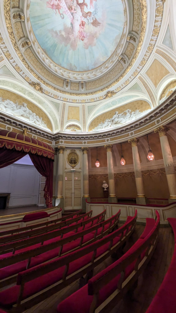 La bonne surprise du château se cache dans l’un des anciens fours de la cristallerie… Des visites guidées permettent de pousser les portes de cet endroit insolite, qui restera sans aucun doute mon coup de cœur du séjour ! C’est la 3ème génération de la famille Schneider qui décide de transformer ce four en un théâtre à l’italienne, inspiré par Versailles. Les décors, trompe l’œil, sculptures, nous plongent dans une autre époque ! On visite aussi la salle des machines, ainsi qu’un aperçu des souterrains qui relient les fours au différentes parties de la maison, à l’époque où les domestiques se devaient de travailler sans se faire voir. Aujourd’hui, il accueille toujours des spectacles et des concerts !