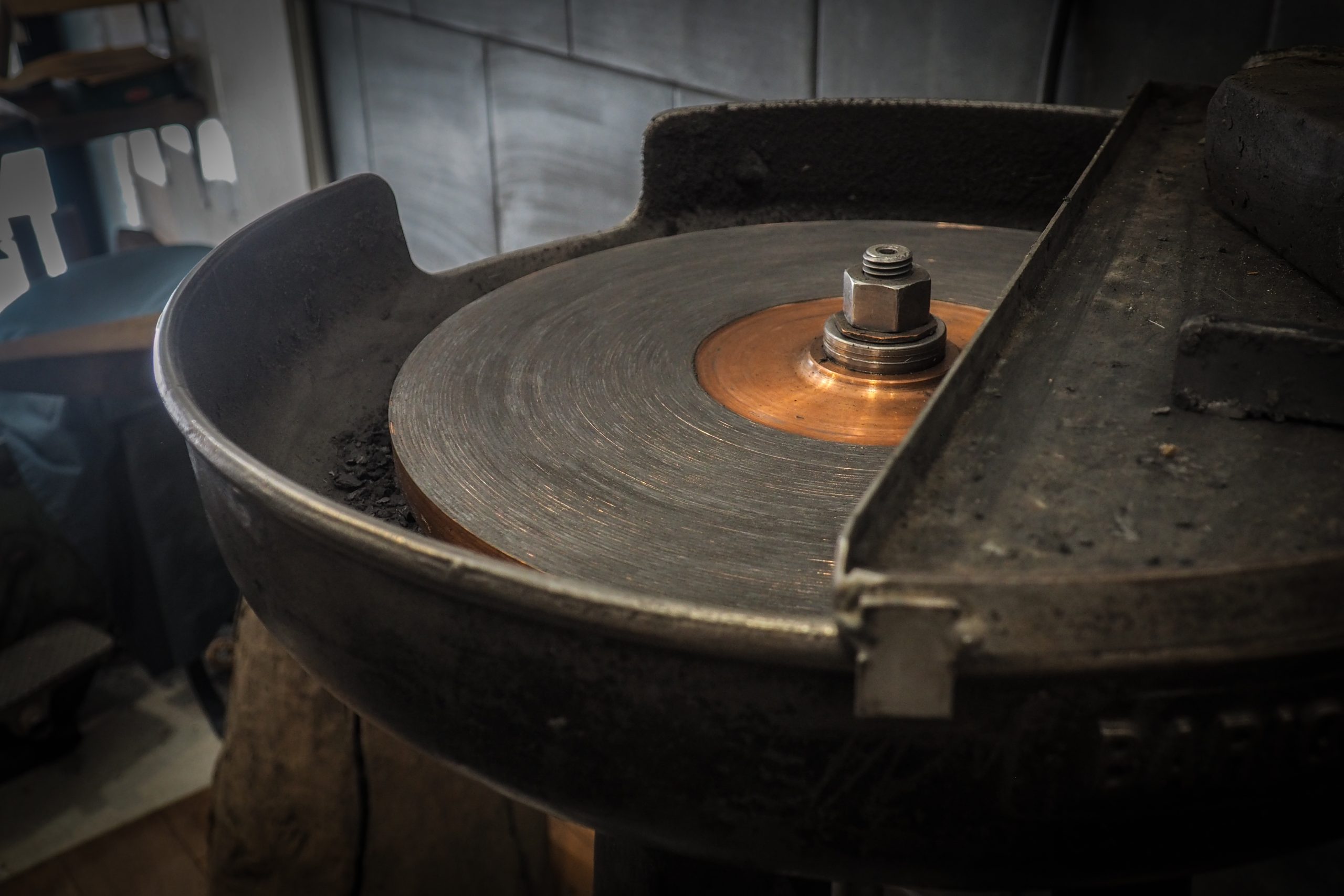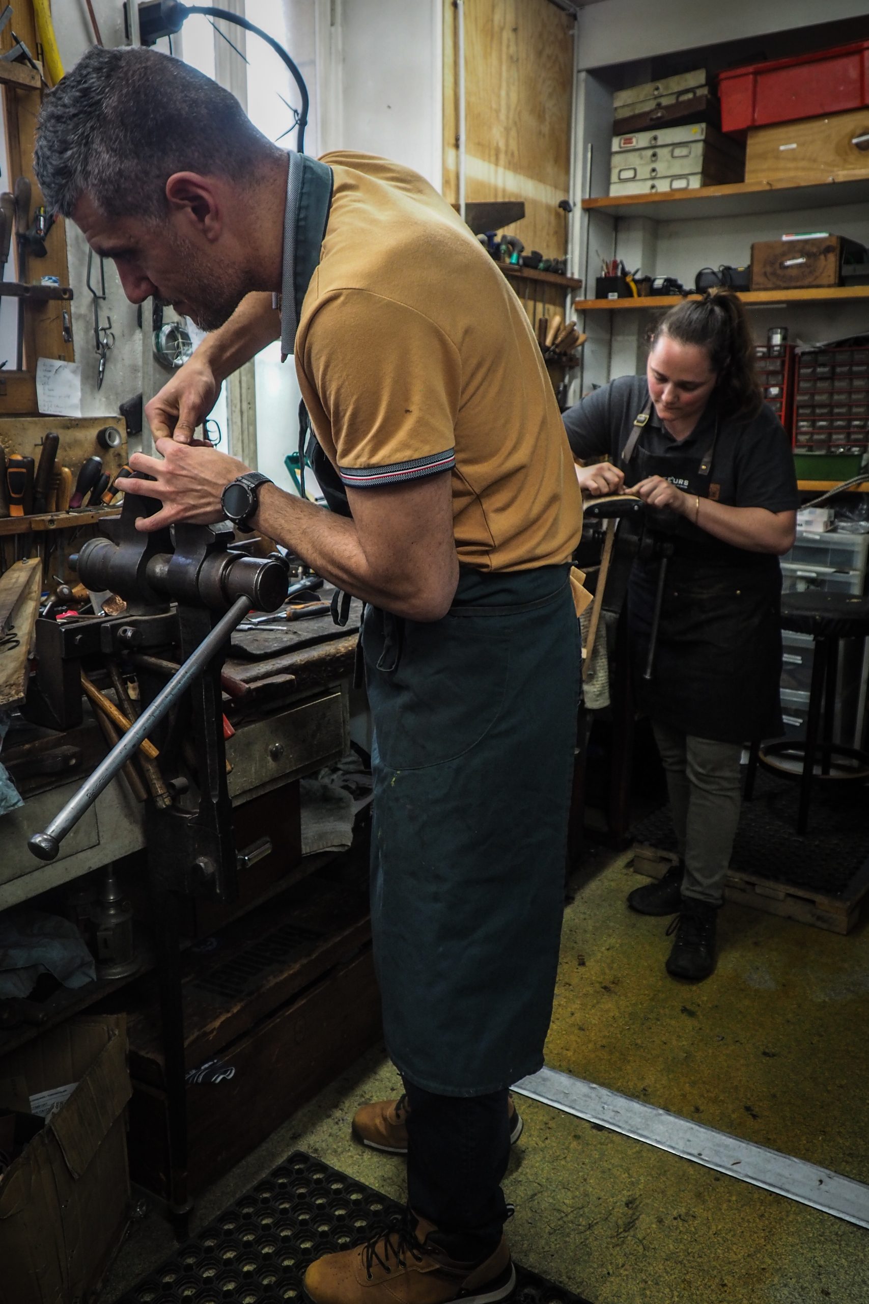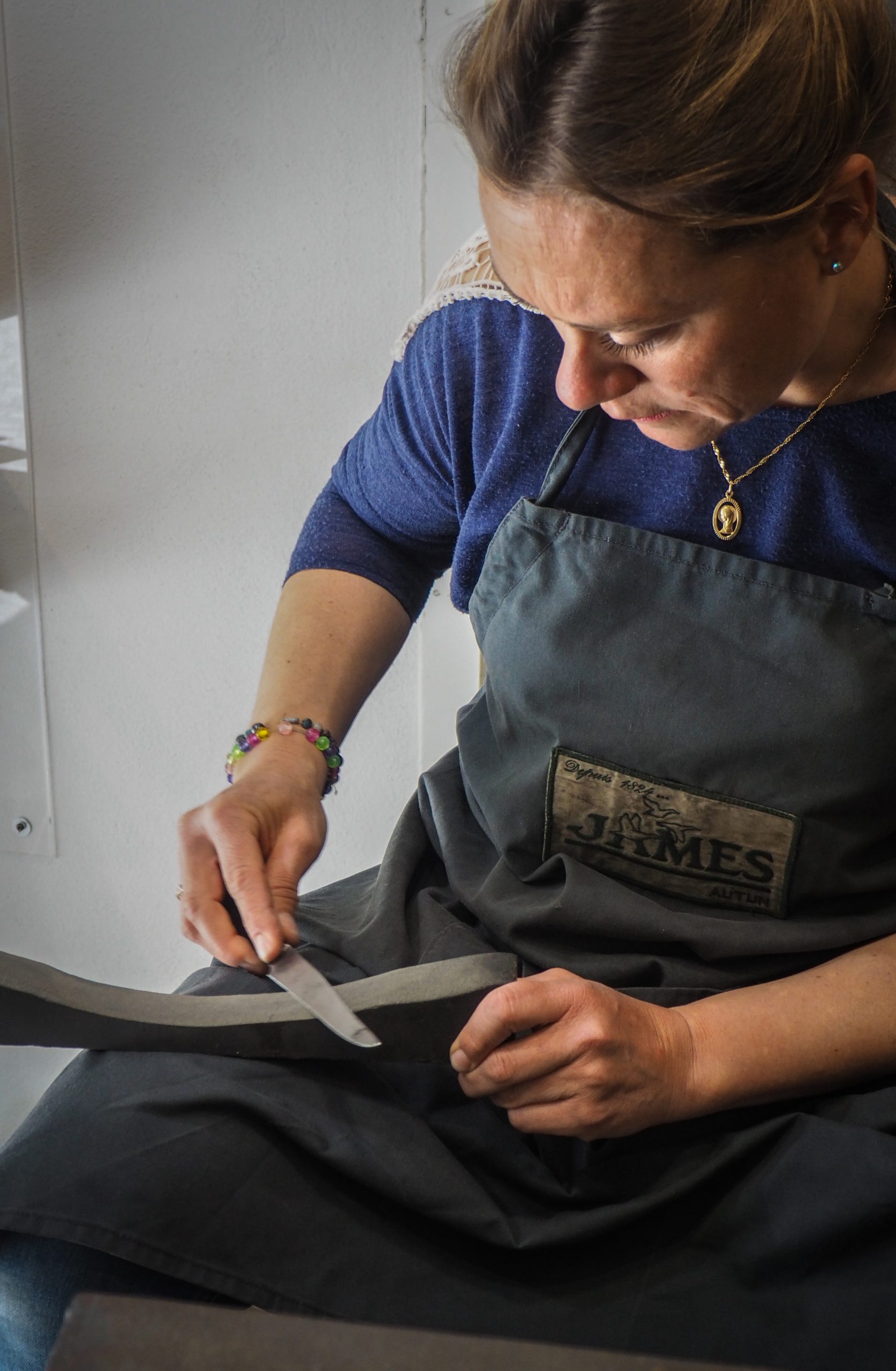 Dans la rue au Cordiers, belle rue commerçante d’Autun, se tient une boutique qui a pignon sur rue depuis 1824. Des générations se sont succedées ici, faisant de cette adresse la plus ancienne coutellerie armurerie de France. Le savoir-faire principal de la maison James, c’est d’abord la coutellerie, à laquelle Pauline apporte son expertise d’armurière il y a 18 ans en reprenant le magasin. Une très belle aventure pour cette femme forte, talentueuse et inspirante, que j’ai adoré regarder travailler sur les machines d’antan, qu’elle a remis en place dans la vitrine du magasin, et qui servent toujours ! Les passionnés se déplacent de l’Europe entière pour acquérir des pièces exceptionnelle de la maison James !