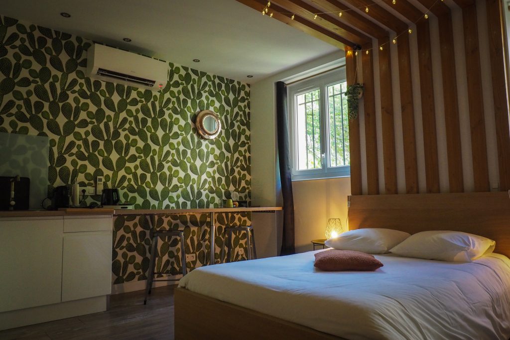 Côté hébergement, nous avons logés à Suite 24, qui propose 5 appart-hôtel thématique dans un même bâtiment. J’avais choisis un petit studio en rez-de-chaussé « la Paillotte », sur un thème nature. Il fait une vingtaine de mètre carré et est tout équipé, salle de bain, cuisine. Mignon et confortable, j’ai trouvé la déco particulièrement cosy !