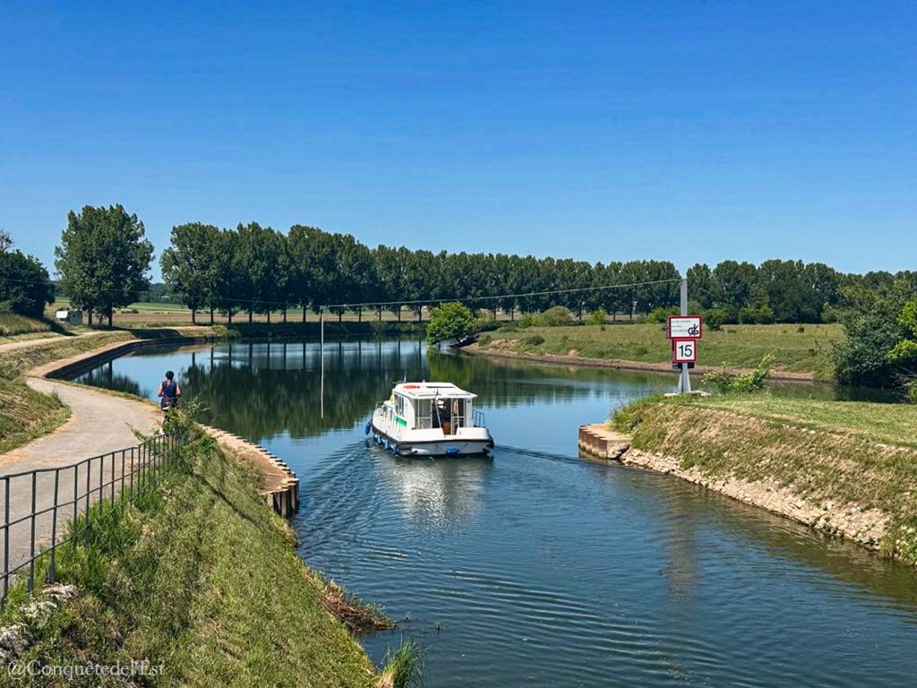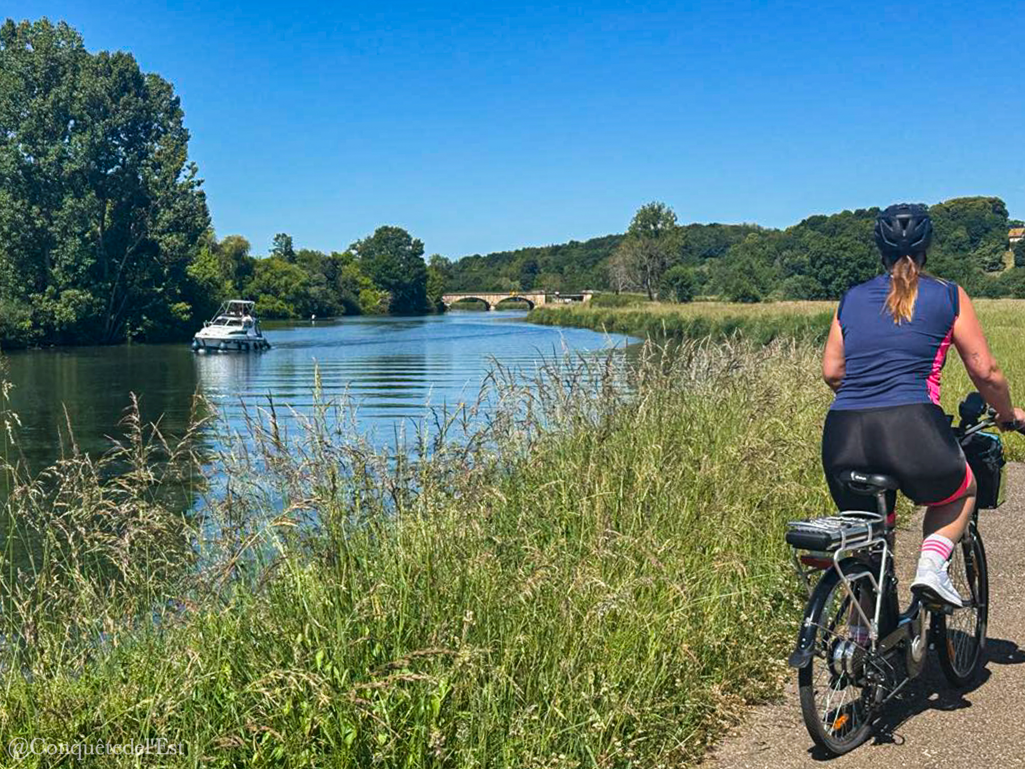 Et si rouler aussi facilement à vélo est possible, c’est grâce à la Voie Bleue qui est une véloroute longue de 700 km de la Moselle aux Vosges du Sud et la partie en Haute-Saône fait 140km de long. 140km à parcourir une piste cyclable qui longe la Saône et parcourt des petits villages bucoliques à souhait. Impossible de vous tromper, c’est super bien indiqué, balisé et fléché par le petit logo de la voie bleue et, tout au long, vous retrouvez des panneaux indiquant où vous êtes.