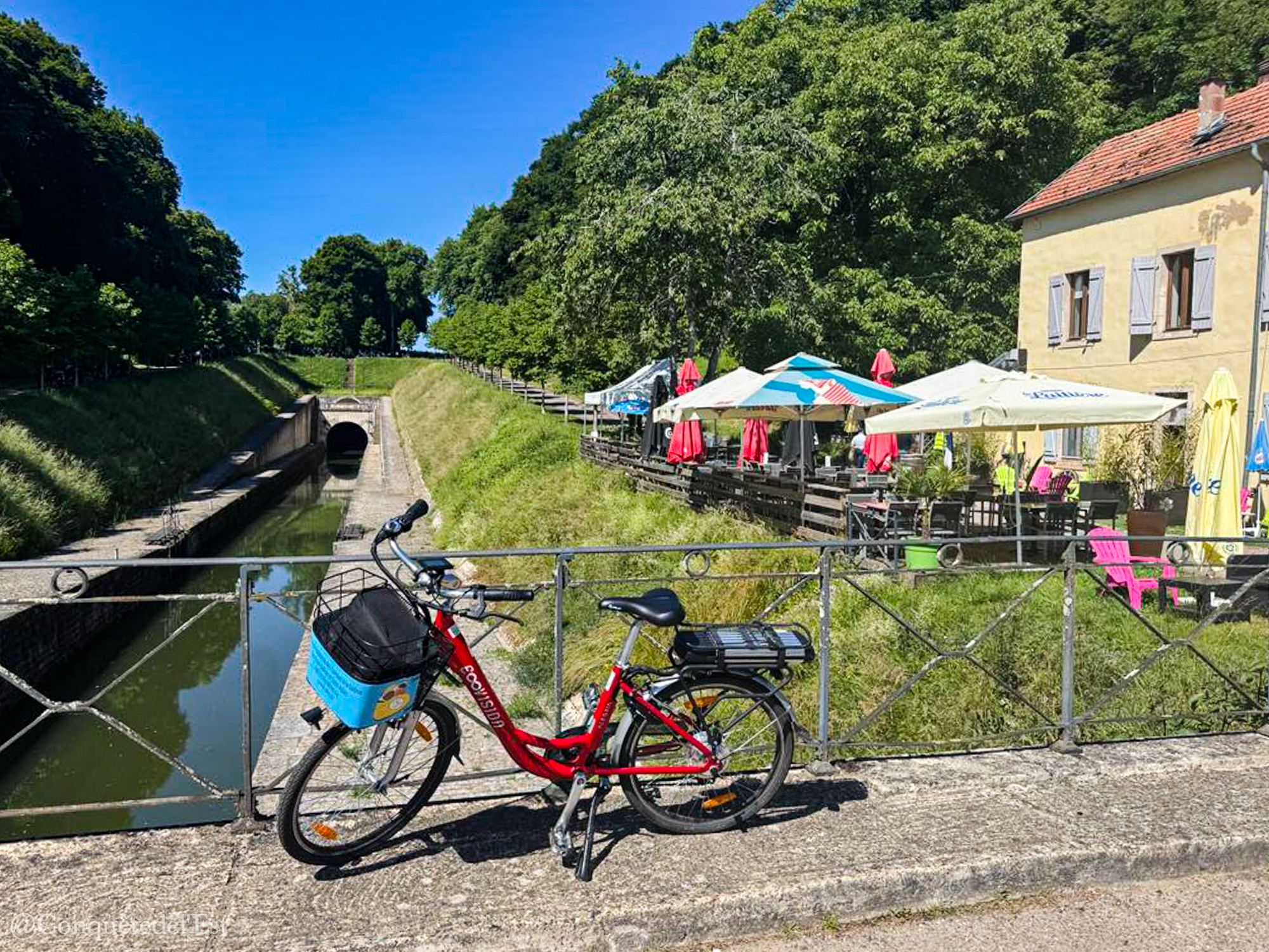 On a repris nos vélos pour revenir sur nos pas, en direction de Scey sur Saône. On a flâné le long de la Saône en regardant les bateaux sortir des écluses. On voulait s’arrêter à Rupt sur Saône, mais les batteries des vélos commençaient à se vider donc on a préféré jouer la carte de la prudence et rentrer directement. On a quand même profiter du Barnayout, le café restaurant qui est au bord du tunnel Saint Albin. C’est vraiment un endroit parfait pour chiller dans un superbe cadre.