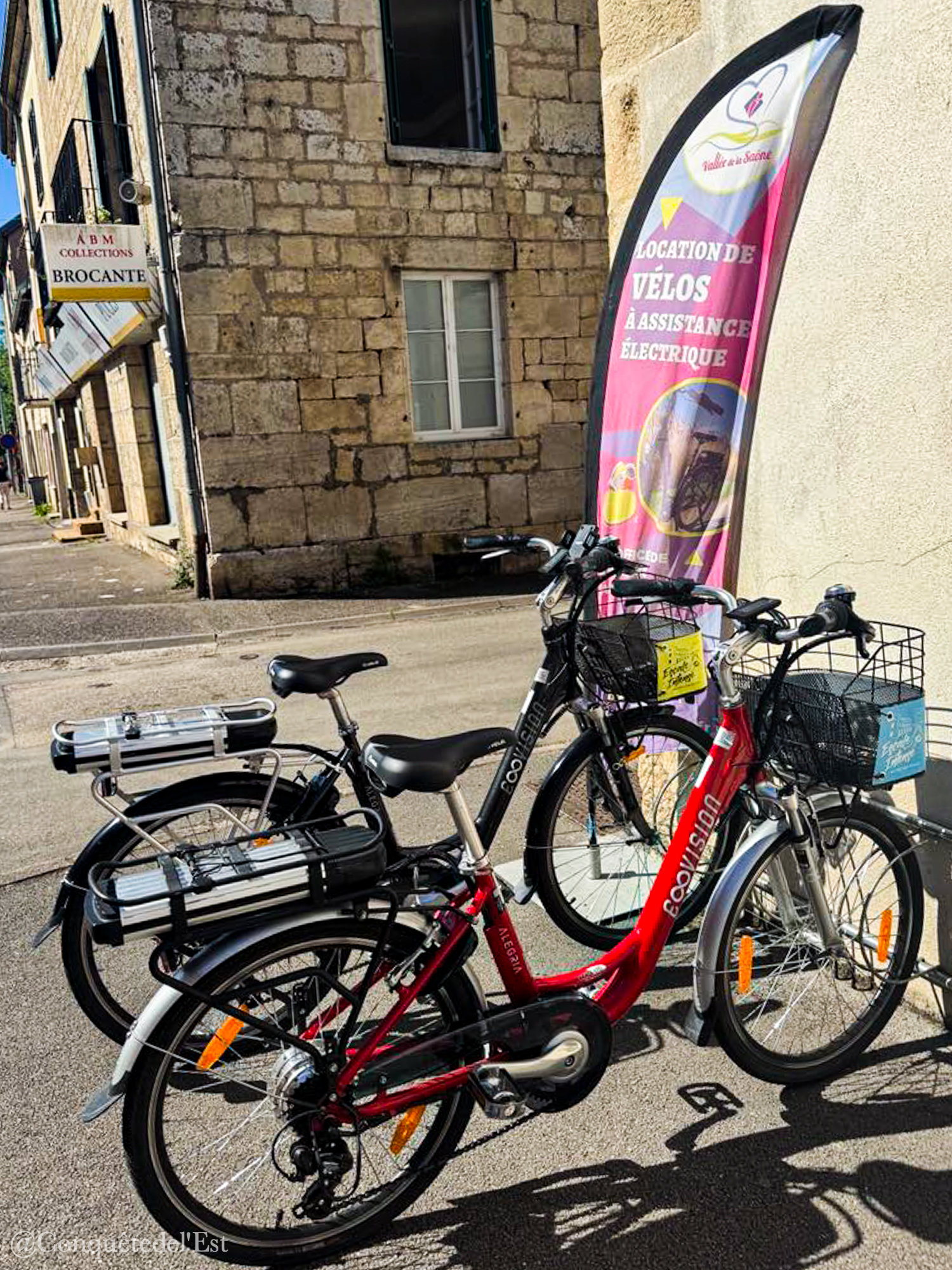 On a pris nos vélos électriques à l’office de tourisme de Scey sur Saône (charmant village en passant). Les tarifs sont tout doux (15€ la demi-journée et 25€ la journée). À l’office, vous pourrez demander des itinéraires à faire selon votre niveau et difficultés que vous voulez. Un panier est à l’avant de votre vélo, pratique pour mettre vos affaires.