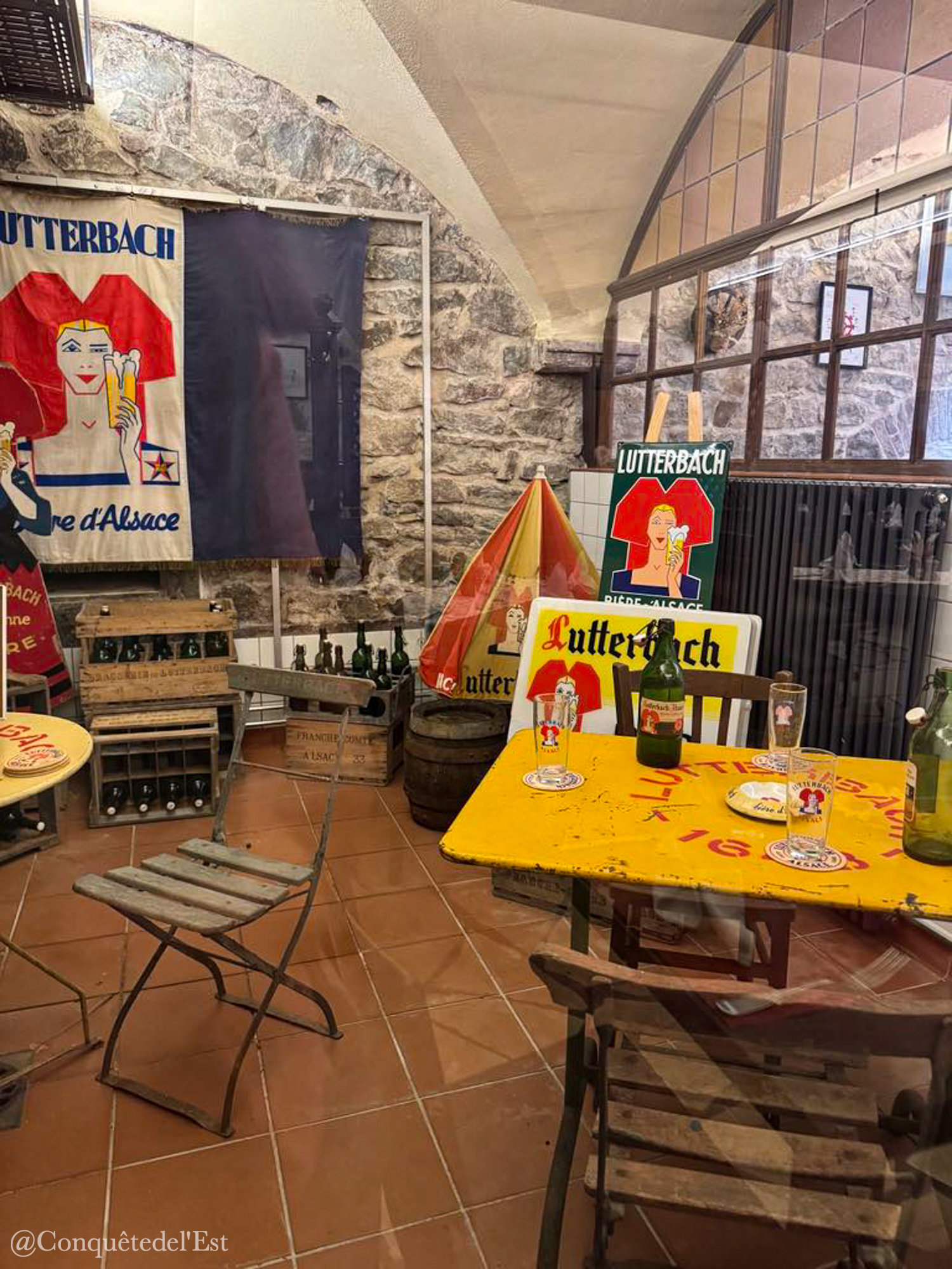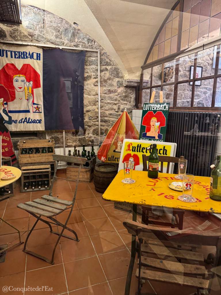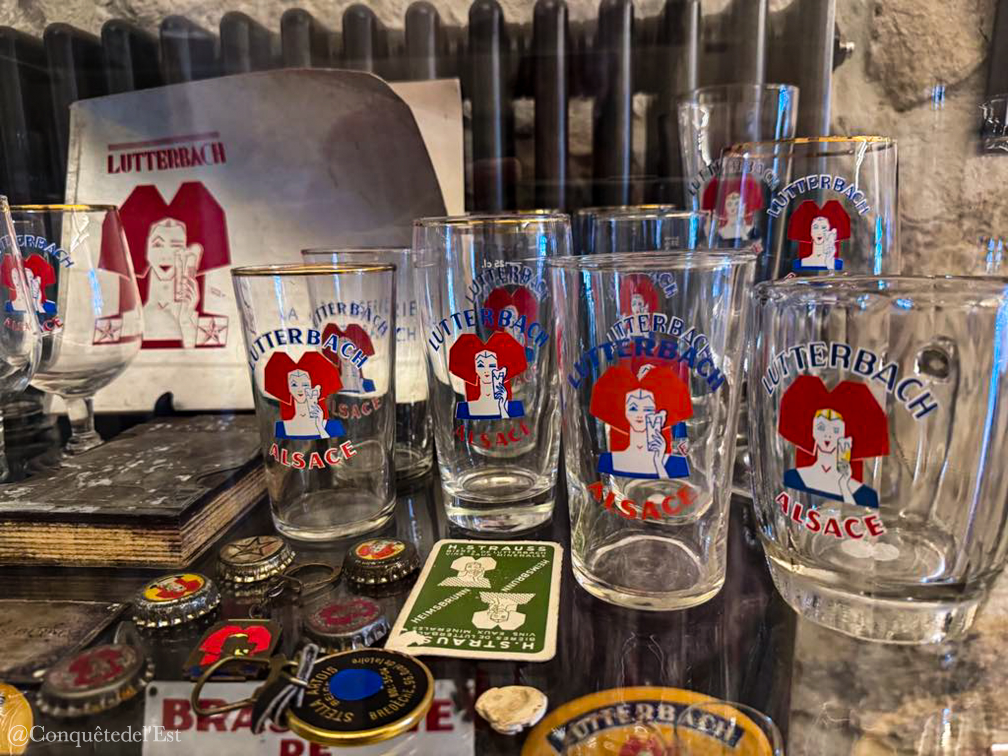 Il ne s’agit pas de n’importe quelle brasserie, celle-ci a une histoire incroyable. D’ailleurs, lors de la visite, on parcourra cette histoire en balayant les dates clé qui sont accrochées sur les murs. La brasserie ancestrale date de … 1648 ! Ce sont des moines qui furent les premiers à faire de la bière à Lutterbach. La brasserie rayonnait dans tout le village, c’était vraiment la place centrale. Ce n’est que 200 ans plus tard que ça devint une brasserie industrielle. On pouvait trouver de la bière de Lutterbach un peu partout en France. Sa popularité est telle qu’elle devient aussi un vrai enjeu publicitaire comme on peut voir des trésors dans les vitrines.
