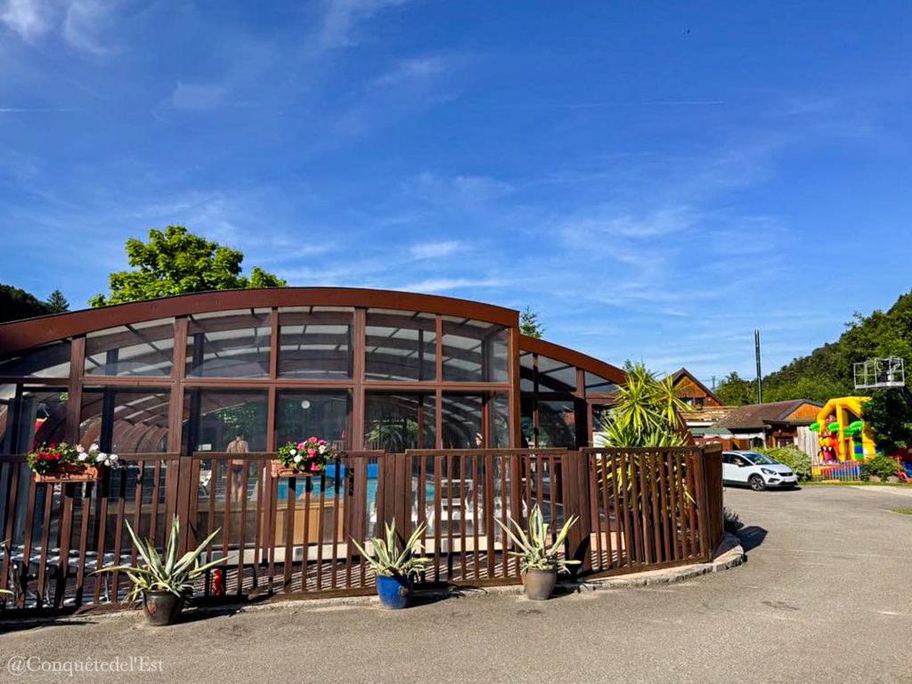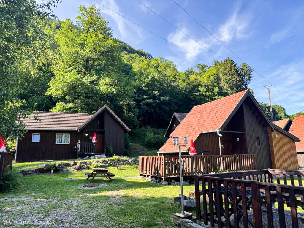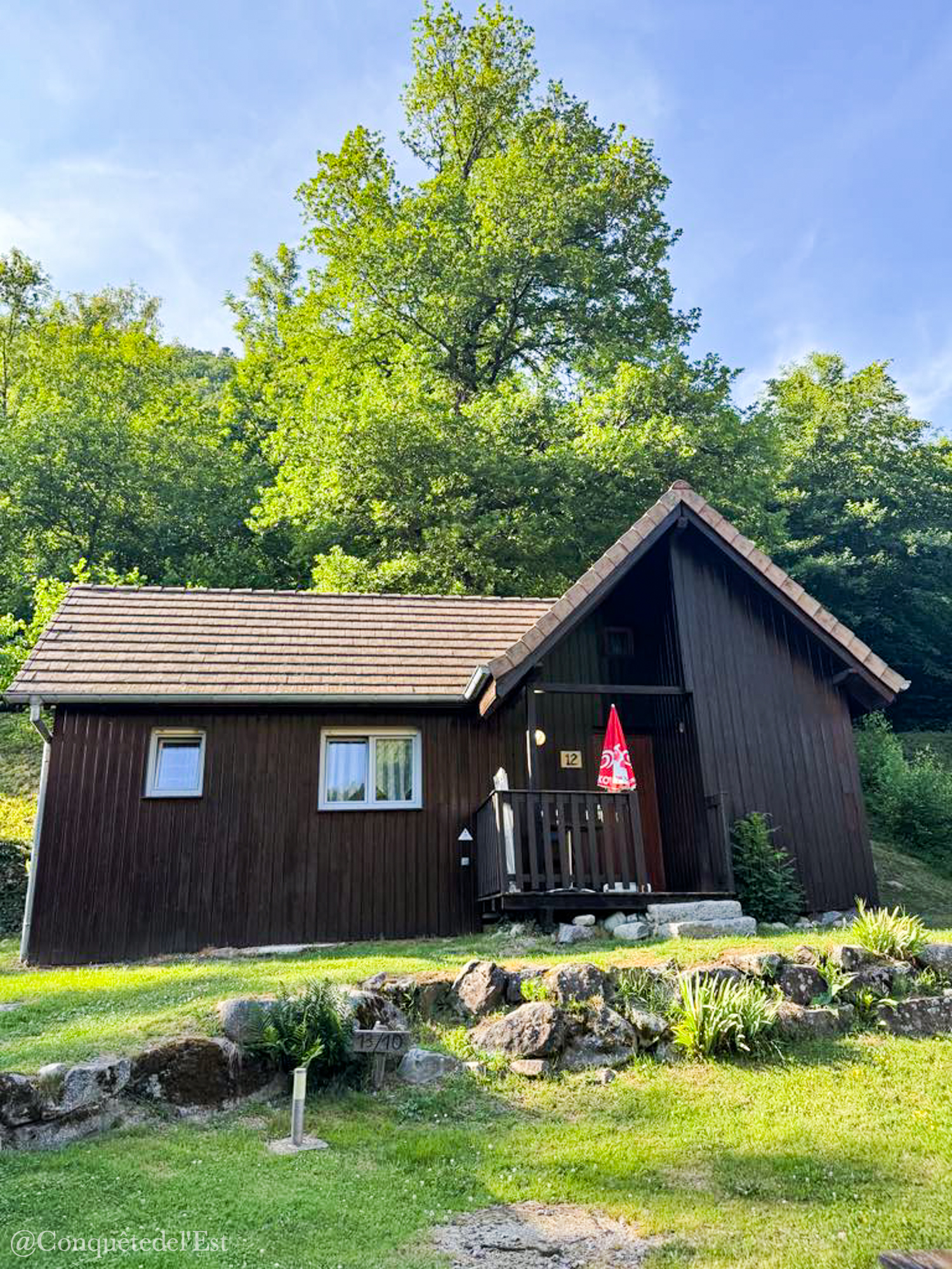 Nous sommes allés, tranquillement, prendre possession de notre logement du soir. On dormira aux chalets de la Wormsa à Metzeral, à une vingtaine de minutes de Munster. Je connaissais vite fait l’endroit, car c’est un départ de randonnées que j’aime beaucoup et j’avais dû m’y arrêter pour boire un verre au retour de l’une d’entre elles. C’est un village vacances composé de plusieurs chalets en bois, au pied de la montagne. À échelle humaine, ni trop grand, ni trop petit. Il y a une grande piscine, des jeux pour enfants, un bar et un restaurant. Les chalets sont simples, mais tout y est ! On a passé une très bonne nuit, au calme. Les animaux sont acceptés avec un ptit supplément de 10€ par nuit.