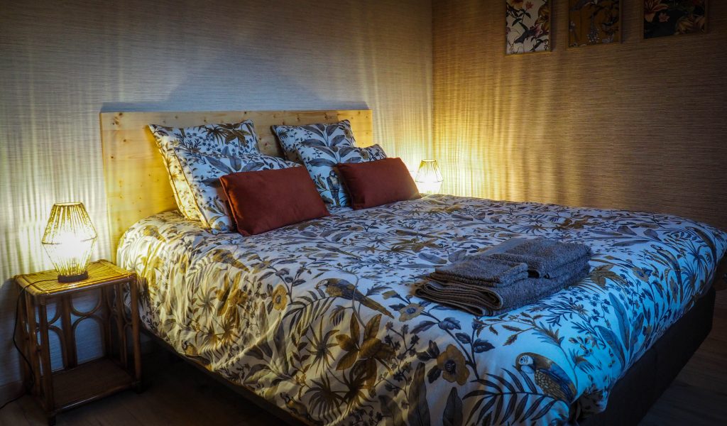 Fidèles à l’esthétique de la marque, les gîtes nous plongent dans une ambiance nature, jungle, exotique, pleine de couleurs et de détails dépaysants. (si les meubles sont souvent dénichés en 2nde main, la literie elle, est neuve et d’une grande qualité !). Symétriques, ils accueillent 4 personnes chacun et communiquent par la terrasse, de sorte de pouvoir les relier si le tout est loué par une même famille. Le mélange des meubles chinés et des touches de déco originales donnent une chouette ambiance. Ils sont vraiment très bien équipés et très confortables. En cas de pluie, ils ont fait le plein de livres dans la bibliothèque et de jeux en tout genre. Et le petit détail qu’on adore: la bière en cadeau d’accueil !