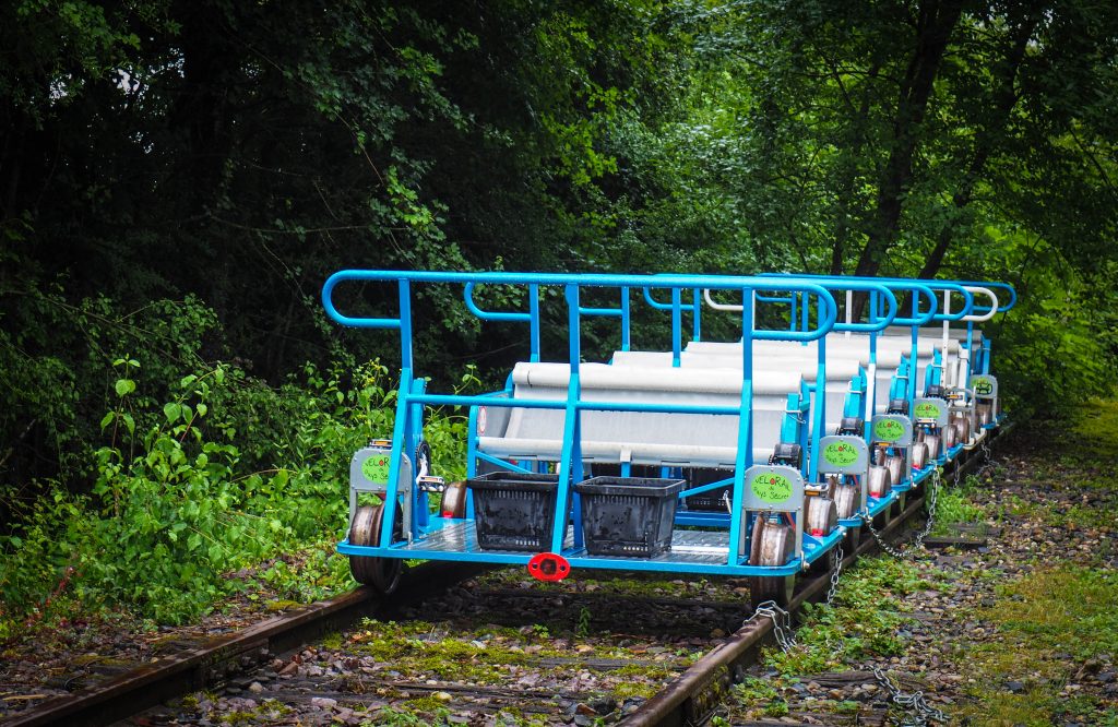 Après une centaine d’années d’exploitation, la ligne de chemin de fer qui relie Drulingen (Alsace) et Schalbach (Moselle), est désormais utilisée pour cette activité de loisir aussi sportive que fun ! Dans la forêt, ou dans des paysages plus ouverts sur les champs, les vallons, ce parcours de 14km permet une petits parenthèse de nature préservée (tôt le matin, vous pourrez même avoir la chance de croiser des animaux !) et une chouette sortie en famille (5 personnes peuvent prendre place sur une « embarcation » = 2 qui pédalent, et 3 qui se la coulent douce !). Si 14km vous font peur, sachez qu’il existe (et c’est la première fois que je vois ça) une option assistance électrique pour le vélorail ! Génial pour que tout le monde puisse en profiter 🙂
