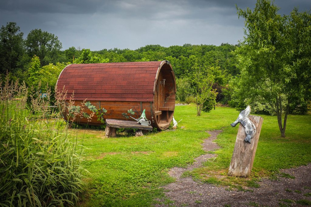 C’est un couple originaire de Bretagne, Anne et Olivier, qui ont repris depuis quelques années ce camping municipal 2 étoiles idéalement situé au bord du canal des Houillères de la Sarre et de l’EuroVélo 5. Je n’ai personnellement pas testé le camping mais j’ai visité rapidement les quelques hébergements insolites disséminés sur les terrains. En plus des espaces camping cars, tentes, mobil home, quelques hébergements insolites sont donc disponibles pour les visiteurs en quête de confort tout en profitant de l’esprit camping.