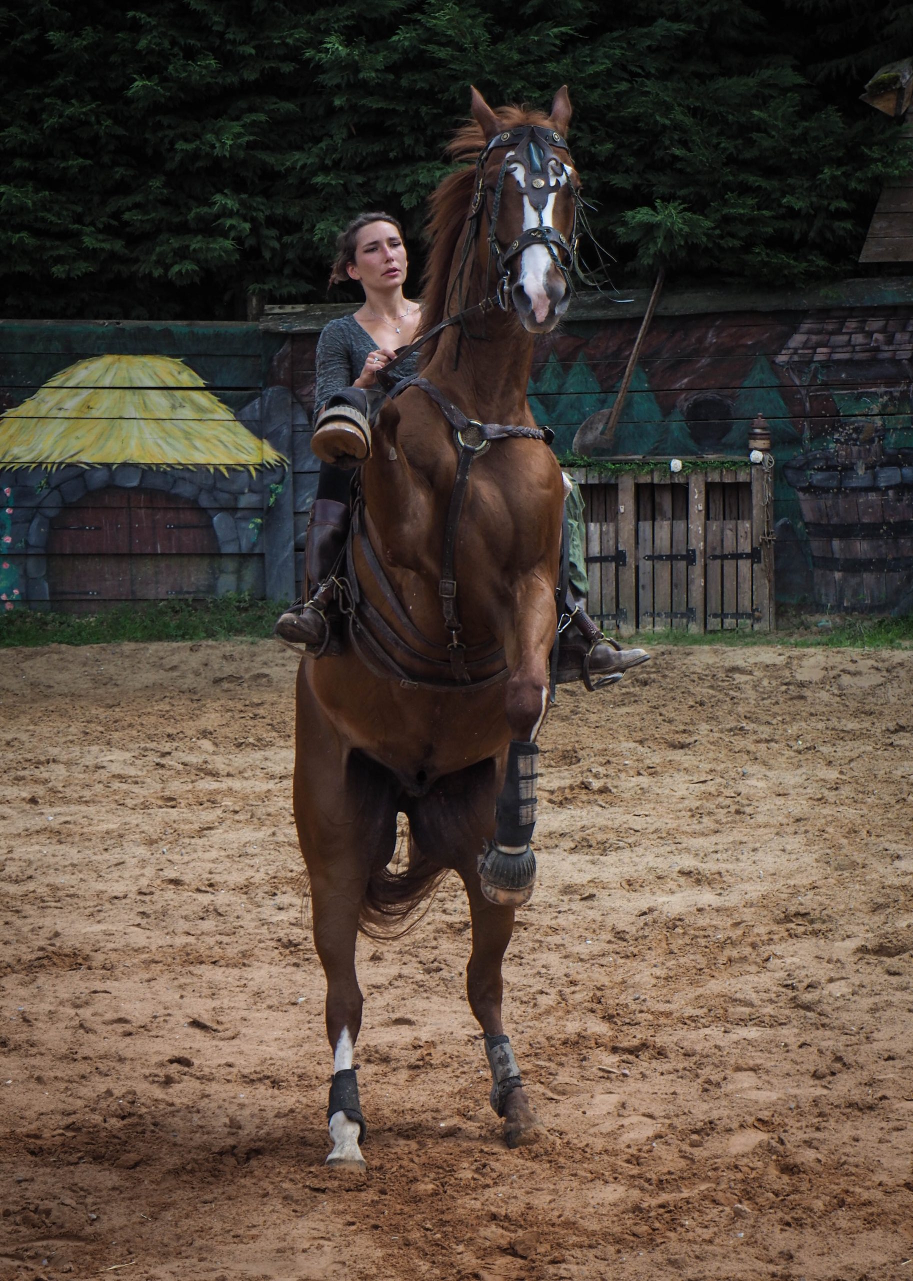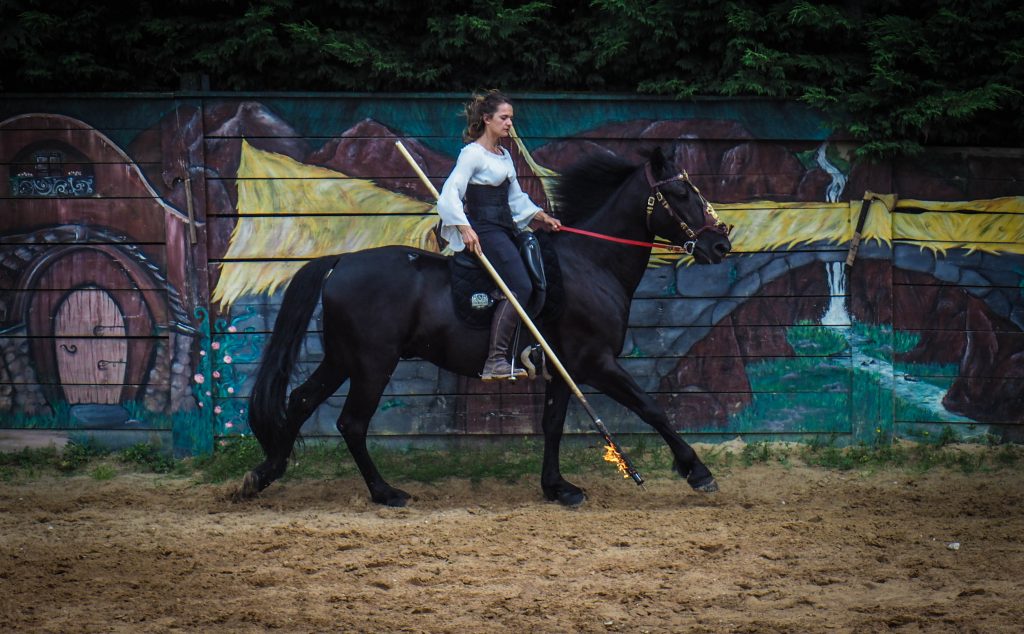 Le point d’orgue de l’après-midi c’est le spectacle équestre, qui se tient la semaine à 14h et les dimanches / jours fériés à 15h si les conditions sont réunies pour son bon déroulement (en l’occurrence le jour de ma visite, ce n’était pas le cas). Nous avons quand même eu droit à un mini spectacle improvisé avec des démonstrations de voltige et de cascades : impressionnant !