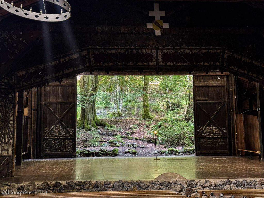 Le lieu est tout aussi unique que la vision de Maurice. Entièrement fait de bois (épicéa vosgien), il est classé aux patrimoines des monuments historiques.
