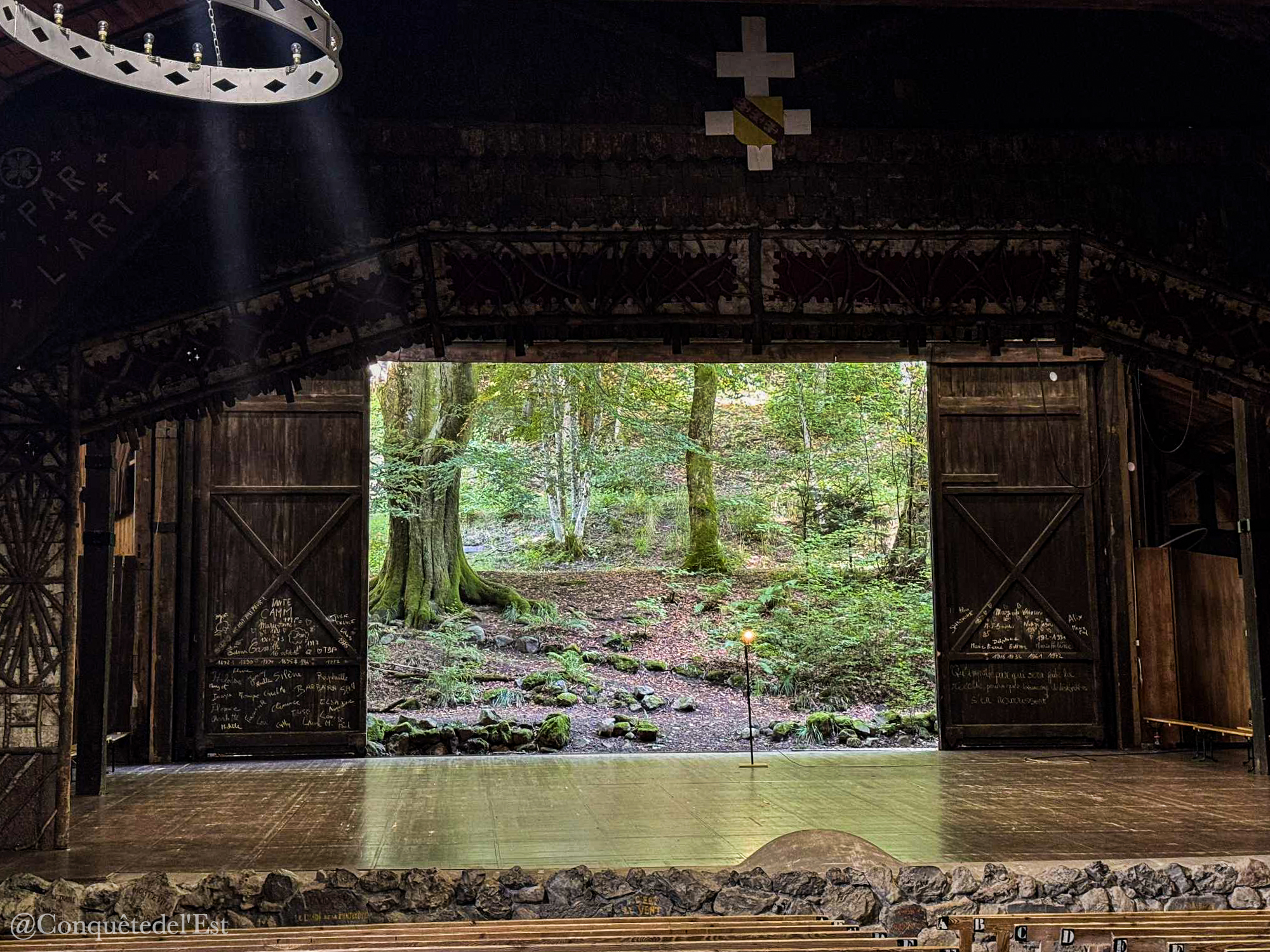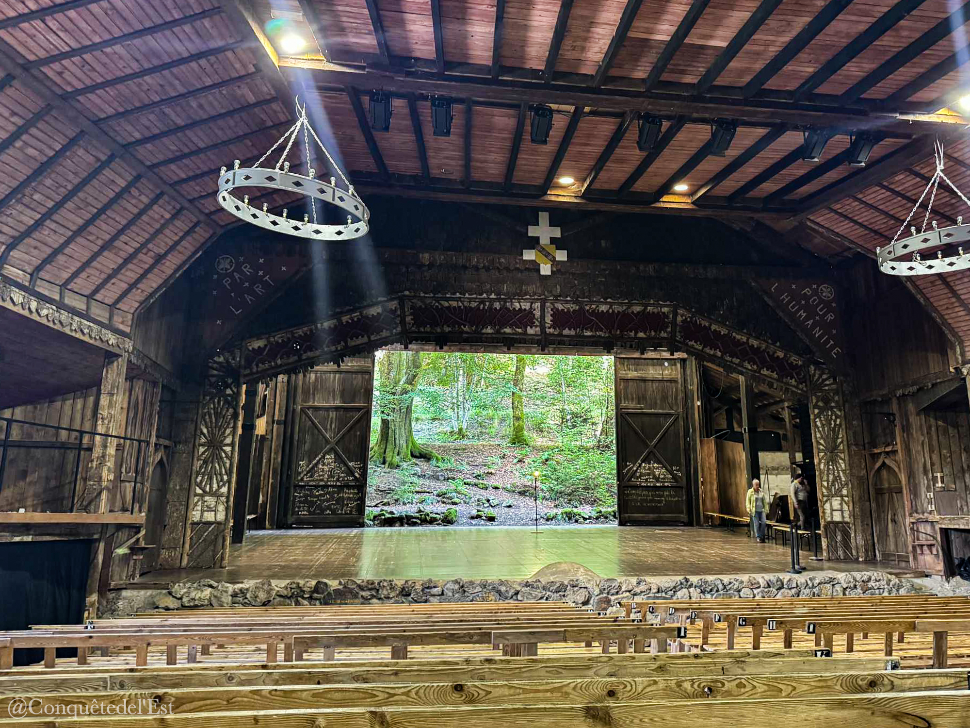 Le lieu est tout aussi unique que la vision de Maurice. Entièrement fait de bois (épicéa vosgien), il est classé aux patrimoines des monuments historiques.