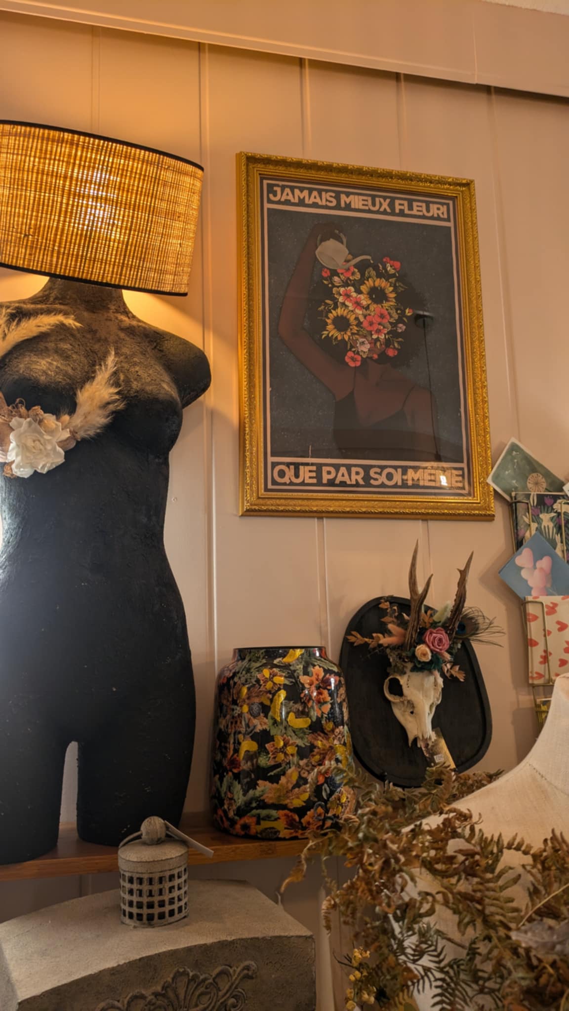 Elle se démarque par le choix de ses articles de déco, mais aussi par ses valeurs et la volonté de ne pas travailler des fleurs de façon non éthique. Ainsi, chez le brin créatif, on y trouve des fleurs qu’on ne voit pas partout ailleurs (exit les traditionnelles roses rouges et blanches ou les lys), mais plutôt des fleurs de saison et des feuillages originaux. Et pour des compositions plus durable, elle travaille aussi les fleurs séchées et stabilisées ! Je suis tombée amoureuse de sa robe de Noël et de son massacre de cerf exposé dans la boutique !