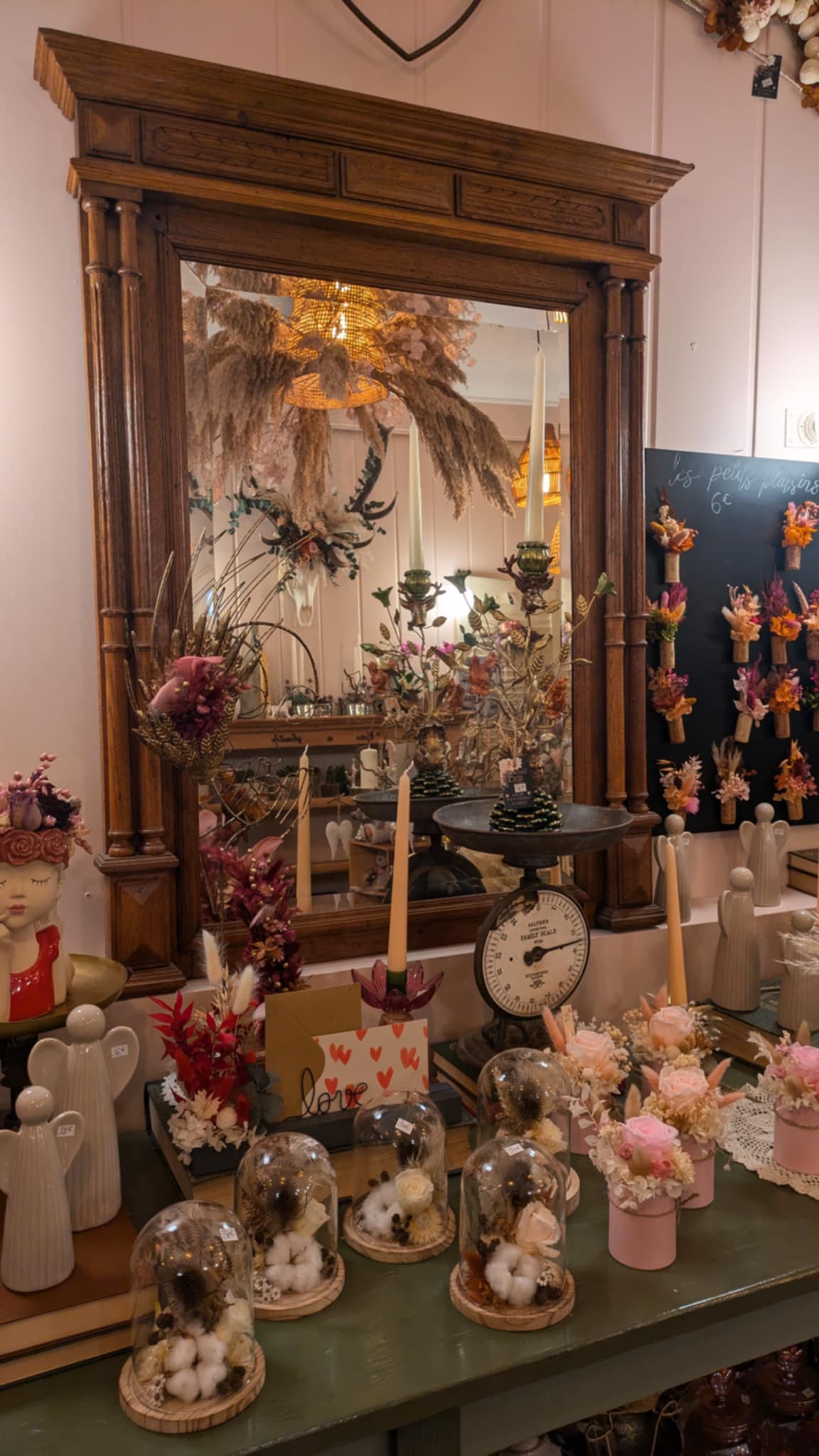 À l’intérieur, je fais la rencontre de la maîtresse des lieux : Melisa ! Je prends le temps de faire sa connaissance avant de faire le tour de la boutique entre deux clients.. Originaire de Moffans, Melisa était manager dans la restauration rapide, mais elle a tout quitté avant le Covid pour changer de voie. Créative de nature, ayant l’habitude de créer des couronnes de fleurs depuis petite, fleuriste devient un métier évident à ses yeux. Elle se forme, puis s’installe à Lure pour y apporter sa touche de nouveauté et d’originalité ! Son envie ? Offrir aux gens de s’évader, par le visuel et pas l’ambiance de sa boutique et de ce qu’elle y propose, histoire de combattre à sa façon la morosité ambiante.
