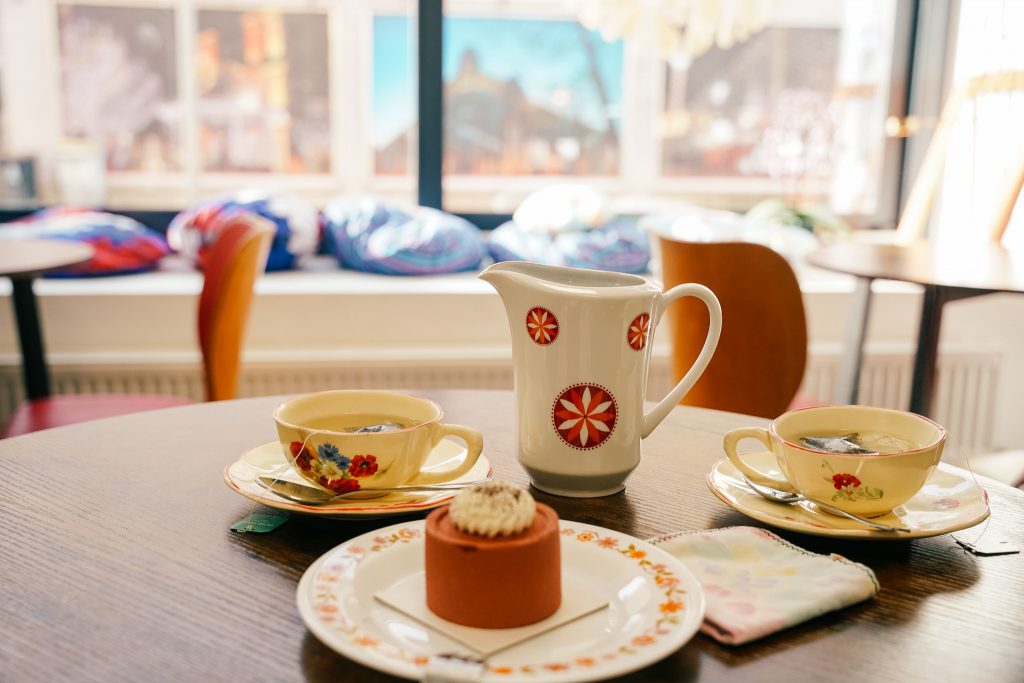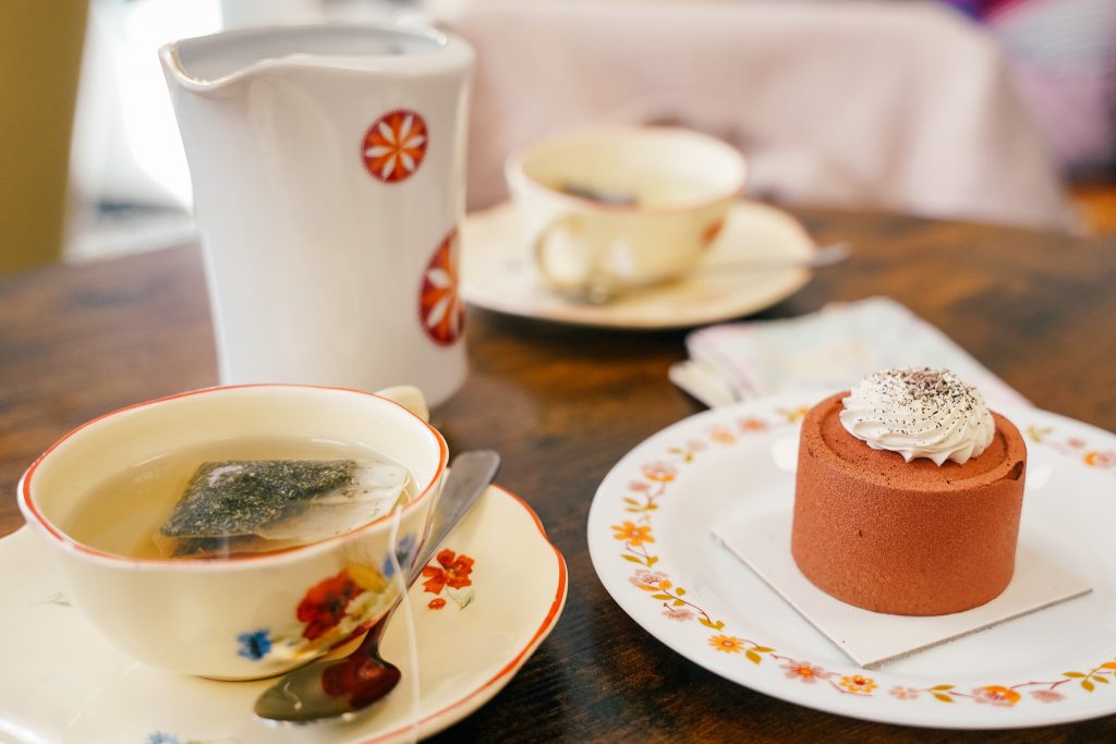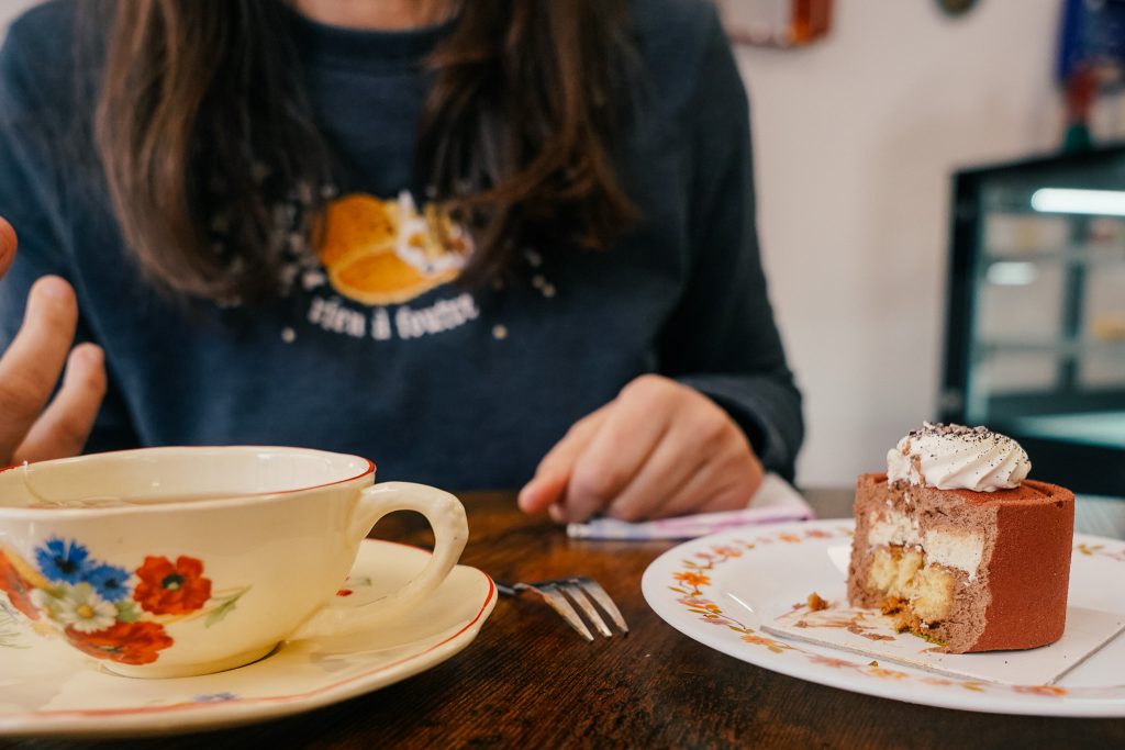 Quand on rentre, on est dans un salon de thé absolument charmant, fait de chines comme on aime. On n’est pas dans un endroit qu’on peut voir dans des centaines de villes ou sur les réseaux sociaux. Ici, ça respire l’authenticité jusque dans les moindres détails. De la simplicité, un rappel aux origines espagnoles, du vintage, on s’y sent bien. On a envie de regarder partout et en même temps de se poser, tout simplement. Il y a même un ptit espace kid friendly.