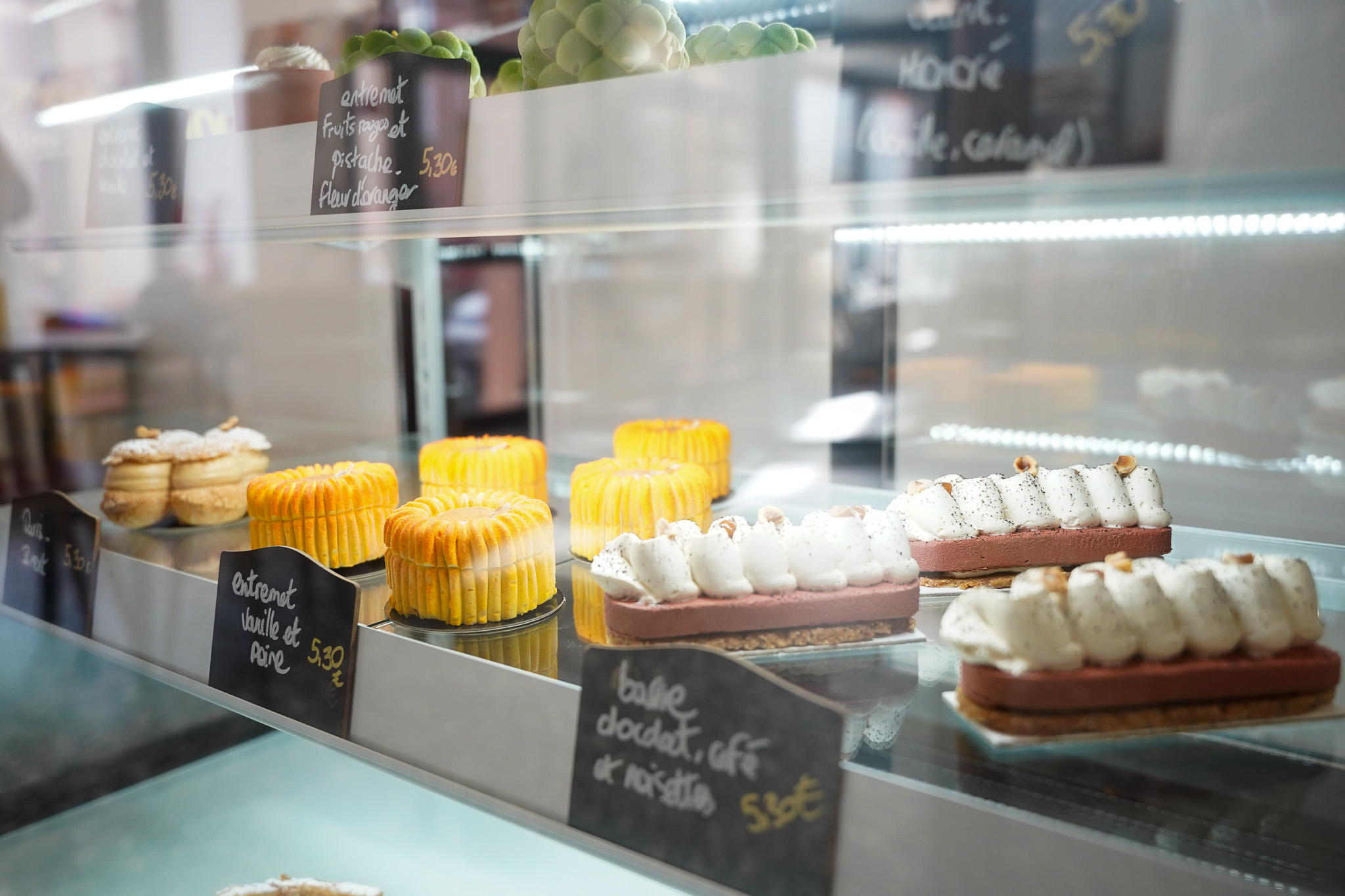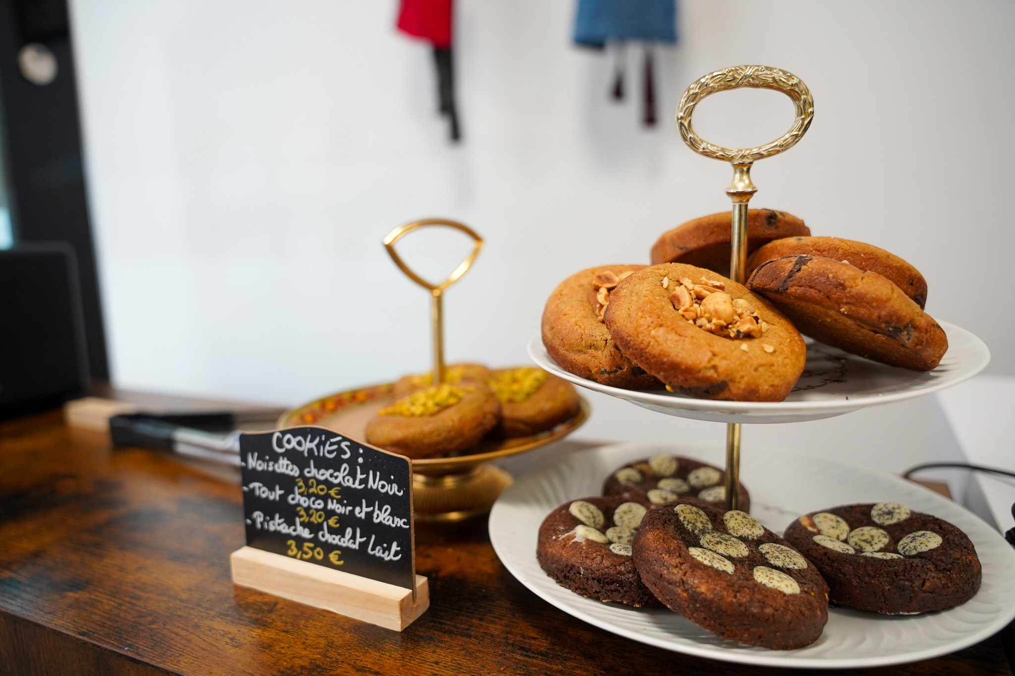 Et pour s’y poser, quoi de mieux que d’aller jeter un œil dans la partie pâtisserie avec les délicieux entremets que Romain confectionne toute la journée. Il faut savoir que Romain a été formé chez les plus grands, des MOF (Meilleur Ouvrier de France) et des noms comme Lenôtre. Ses pâtisseries sont fines, un équilibre parfait, des saveurs incroyables. Et j’ai pu voir sur les réseaux à quel point ses galettes des rois ont été appréciées. J’adore les flans pâtissiers et oh mon dieu le sien !!! Il propose aussi des cookies ultra-gourmands.