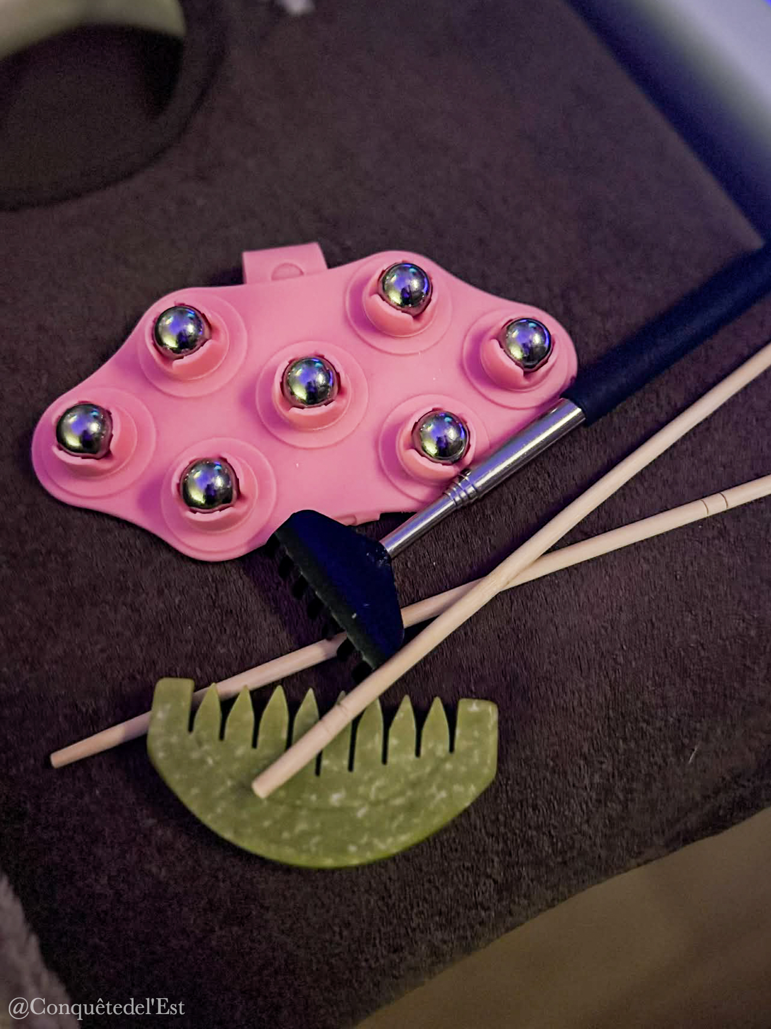 Tout au long du soin, vous allez être hyper attentif aux premières sensations à chaque changement d’ustensiles. C’est un soin assez ludique en fait, qui vous fait repartir dans l’enfance, les papouilles ont ce côté régressif très agréable. C’est vraiment un soin très sensoriel aussi. On est autant stimulé corporellement mais aussi auditivement, chaque objet utilisé procure un son différent et une sensation différente.