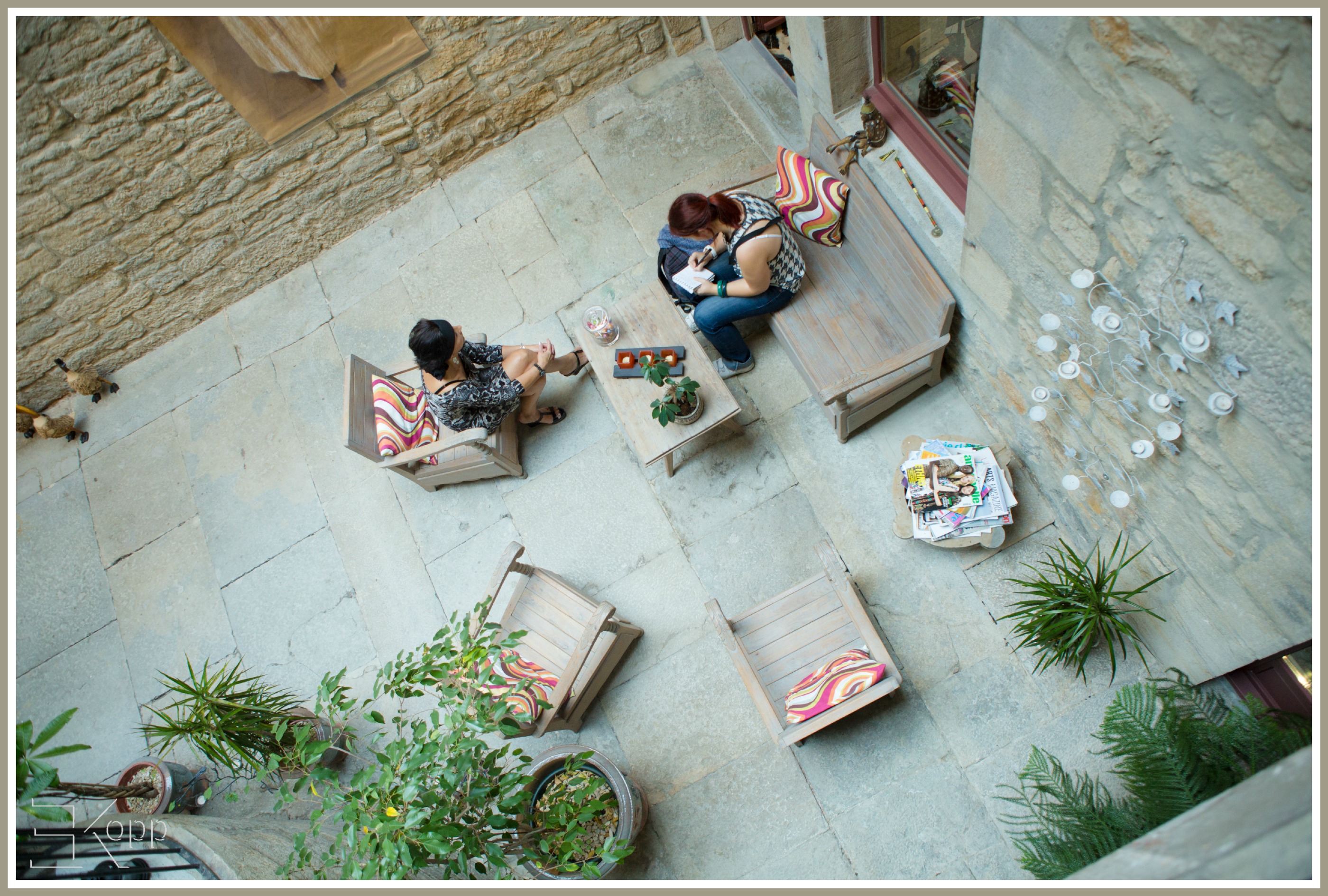 L’endroit ne paye pas de mine, à première vue. Le bâtiment donne sur une jolie petite rue, et ne révèle pas encore tout ce qu’on pourra voir derrière : la surprise est totale 🙂 (Ça tombe bien, on aime bien ça, les surprises.) La propriétaire nous raconte un peu l’histoire de ce lieu bourré de charme : originaire d’Alsace, et ayant envie de changer de vie, Patricia a décidé de monter son projet de rénovation à Arbois. Pendant 8 ans, elle a veillé au bon déroulement des travaux colossaux qui ont permis, grâce aux artisans locaux, de redonner une nouvelle vie à cet ancien couvent du 17ème siècle.