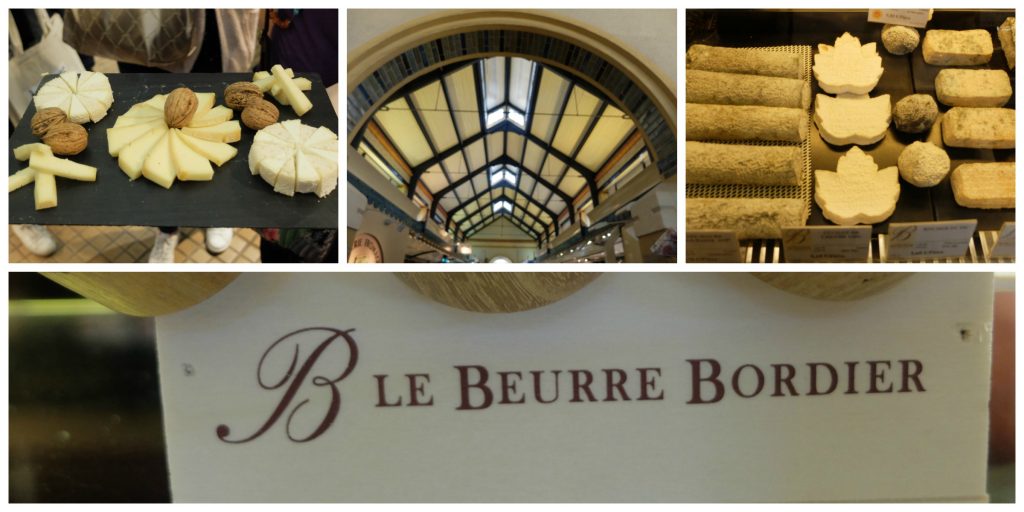 Nous partons ensuite direction les Halles, un lieu authentique, où nous attends une dégustation de fromages et de beurre. Mais pas n’importe quel beurre, les fameux Beurres Bordier ! On assiste même à la fabrication d’une plaque de beurre à partir d’une motte et on découvre une palette de saveurs étonnantes : aux algues, salé (forcément !), poivre, vanille…. Un régal !
