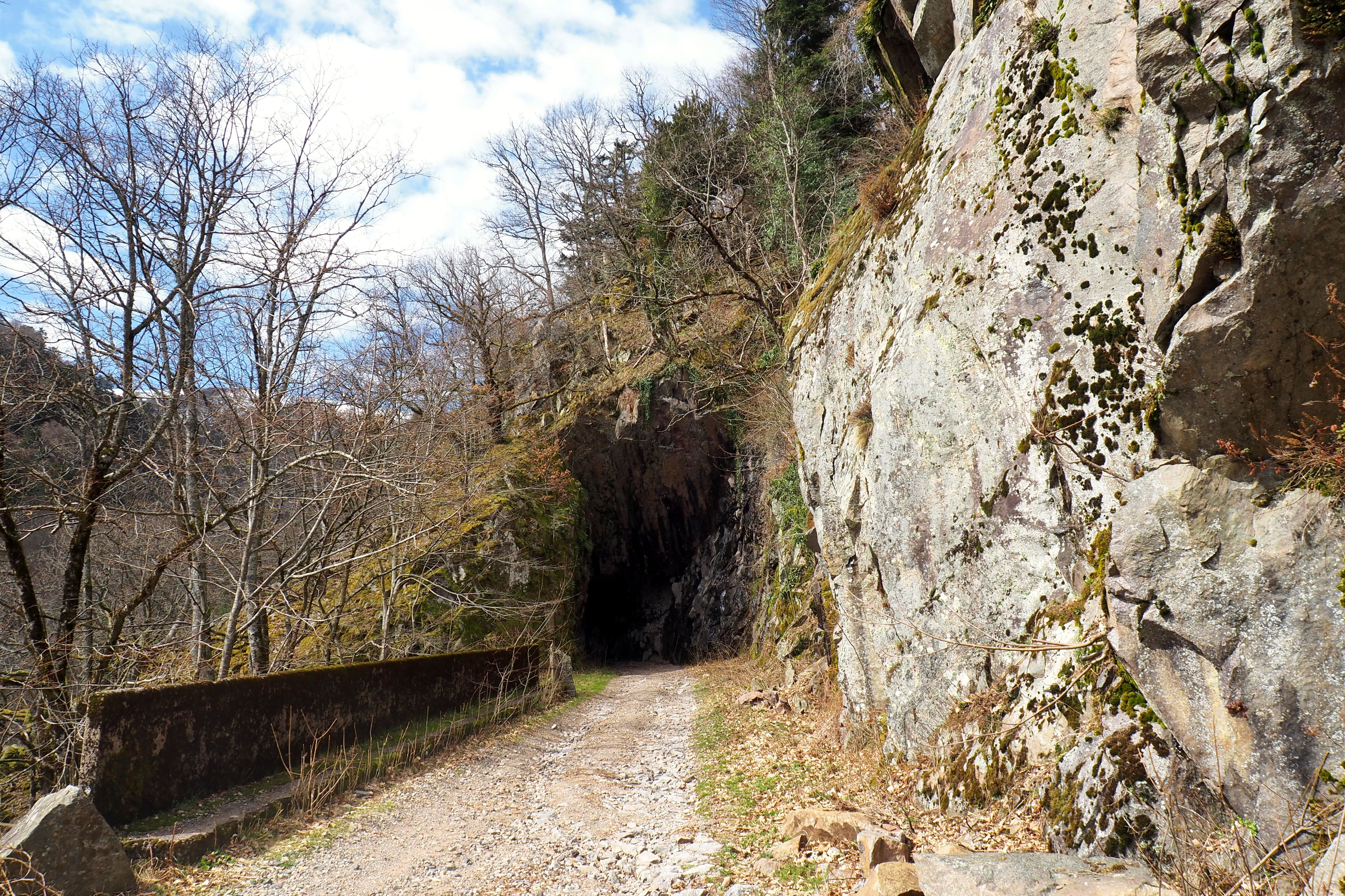 C’est d’ailleurs la partie la moins intéressante. Il s’agit d’un chemin forestier et honnêtement, pas beaucoup d’intérêt. On commençait même un peu à s’inquiéter si la randonnée allait valoir le coup ! Et puis, on a écarquillé les yeux ! En face de nous trônait un chemin dans la roche, un espace nous invitait à y passer pour ensuite en prendre pleins les yeux. Une jolie vue sur la vallée de Munster s’offrait à nous. Comme c’était encore la fin de l’hiver, les couleurs étaient assez ternes mais c’était bien joli.