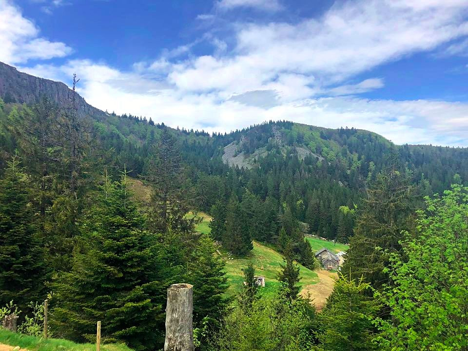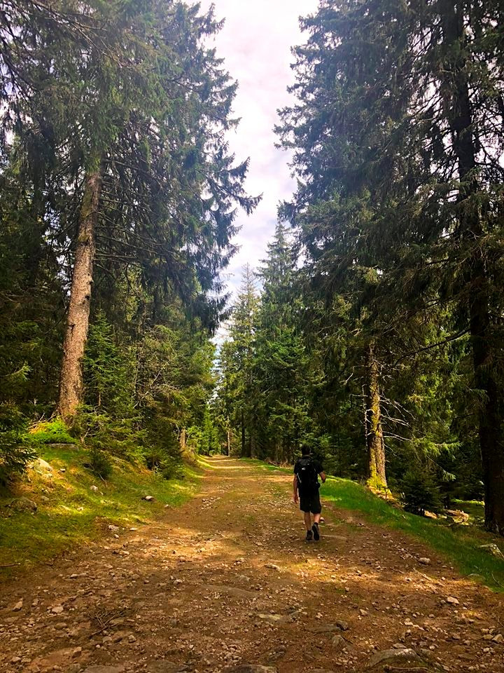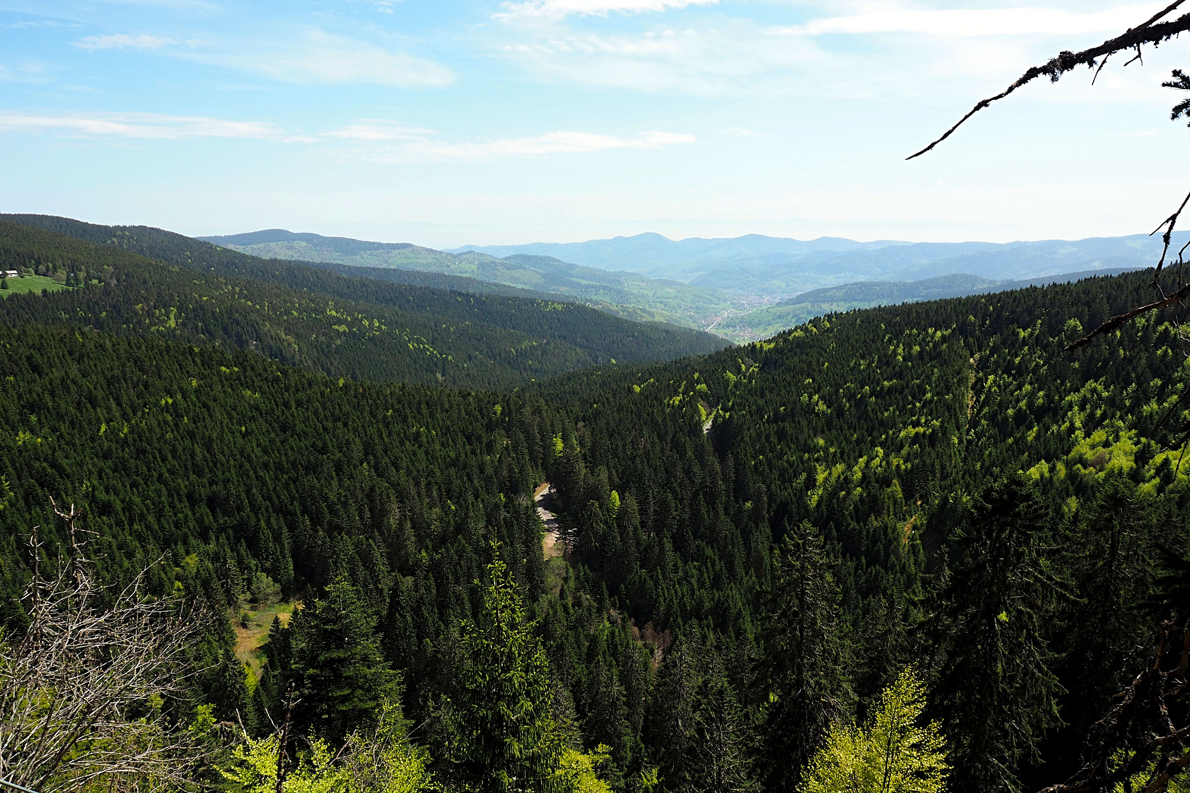 On continue et on peut vite voir que la randonne n’est absolument pas monotone et je l’ai beaucoup aimé pour ce point là ! Il n’y a rien de plus pénible que d’avoir toujours la même sorte de sentier ou d’arbres ou de paysages. Là, vous aurez du chemin forestier, des cailloux, des sentiers escarpés, de la foret, de la clairière, de la ferme auberge … le tout pour atteindre le sommet des crêtes et finir votre randonnée avec la vallée de Munster qui vous accompagne. Je pense même qu’avec un peu de chance, vous pourrez apercevoir des chamois puisque toute une partie est dans la réserve naturelle de Tanet-Gazon. Vous pouvez même voir en contrebas le lac vert lors d’une partie de la rando.