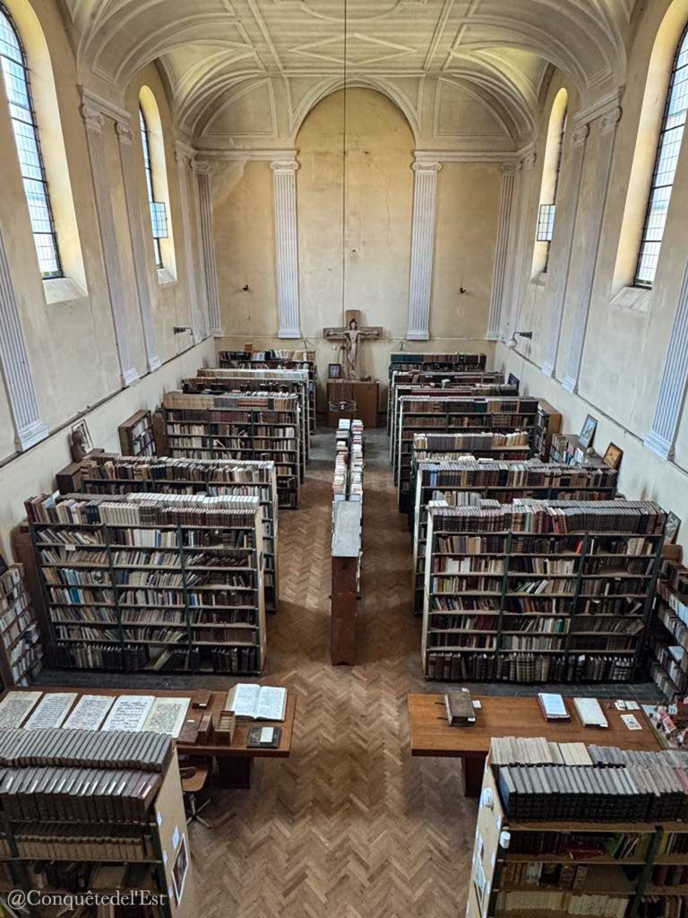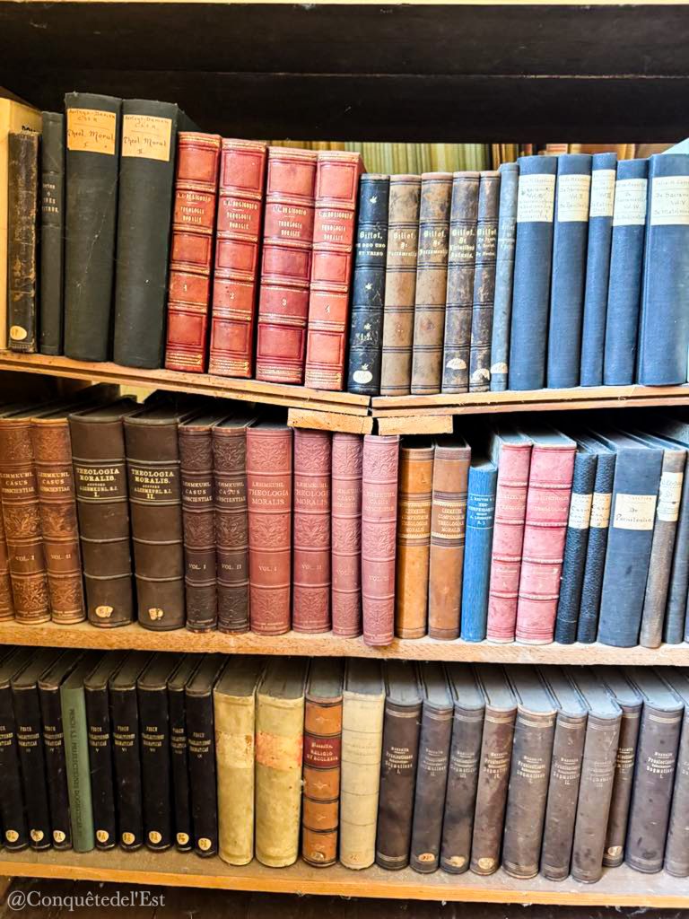 On a vu, ensuite, un lieu incroyable : la bibliothèque. Alors, il y a des étagères de livres un peu partout, mais cette pièce, ah là là ! Que c’était beau tous ces vieux livres, cette odeur, on pouvait encore s’imaginer les moines feuilleter des vieux manuscrits.