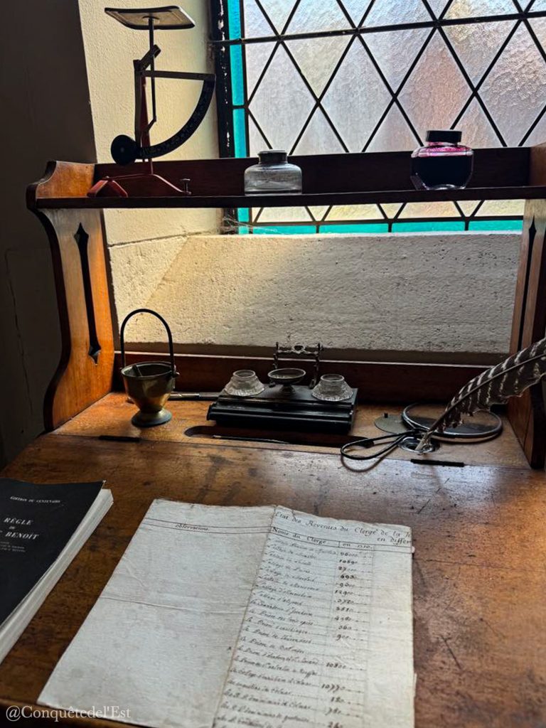 Lors de ces visites, nous avons le privilège de pénétrer dans certaines pièces où vivaient les moines. On entrera en premier dans l’église abbatiale. Épurée, elle est majestueuse. J’ai beaucoup aimé ses vitraux et son orgue qui est sur un côté de l’église, contrairement à d’habitude où ils sont toujours au fond en hauteur.