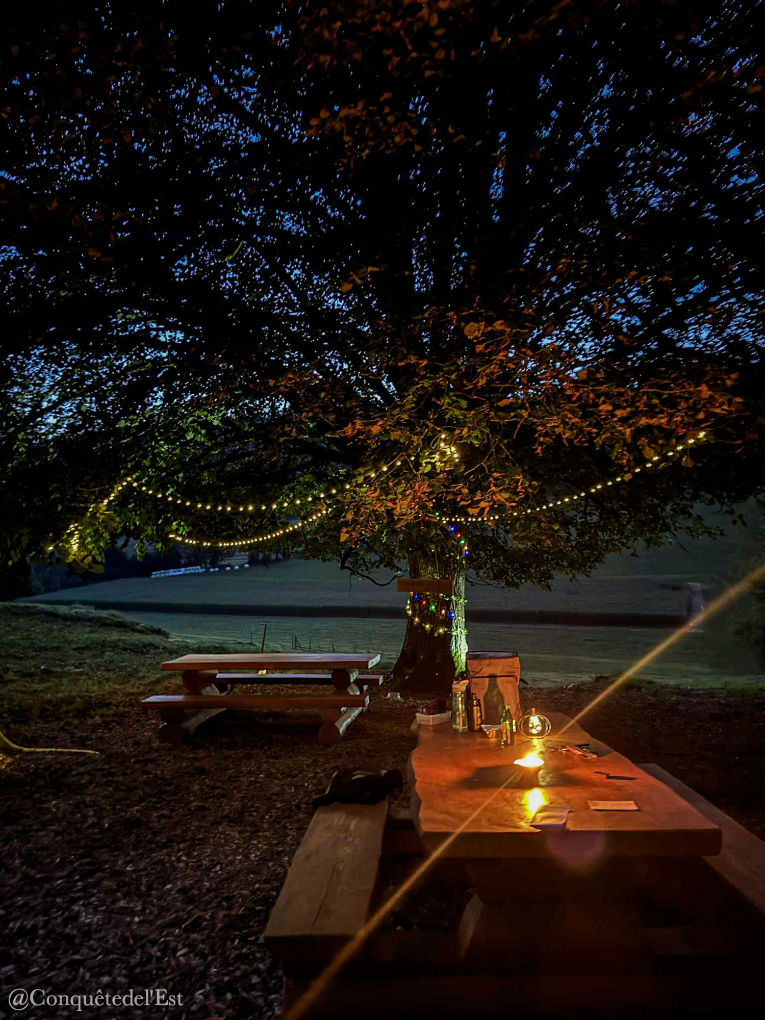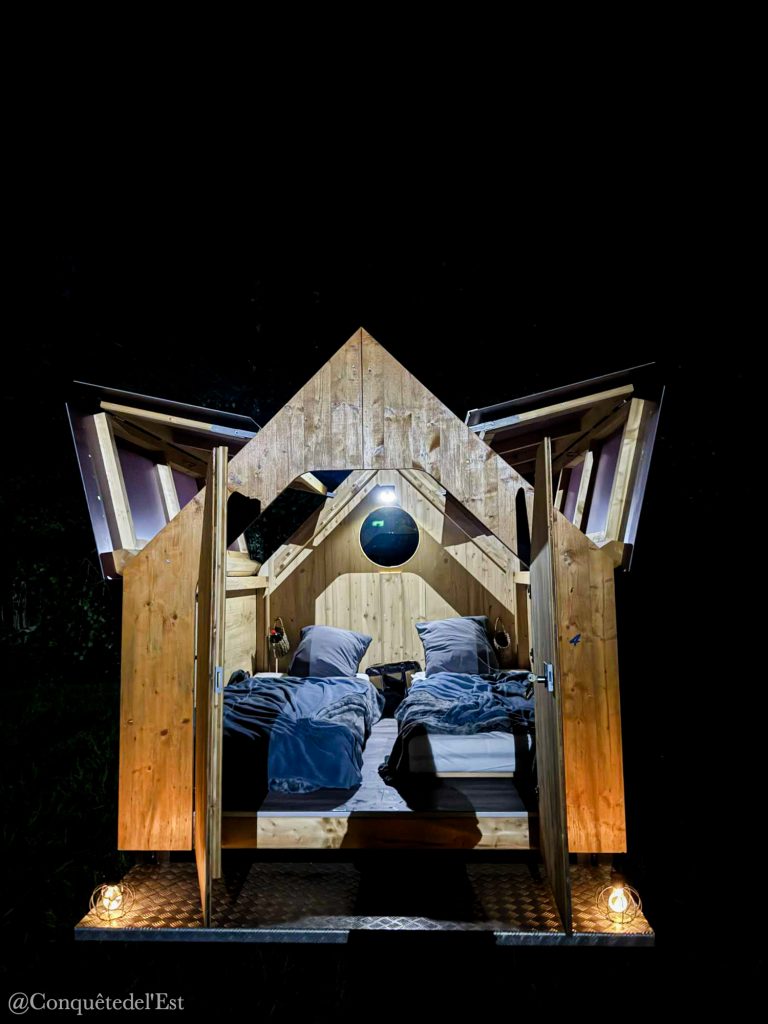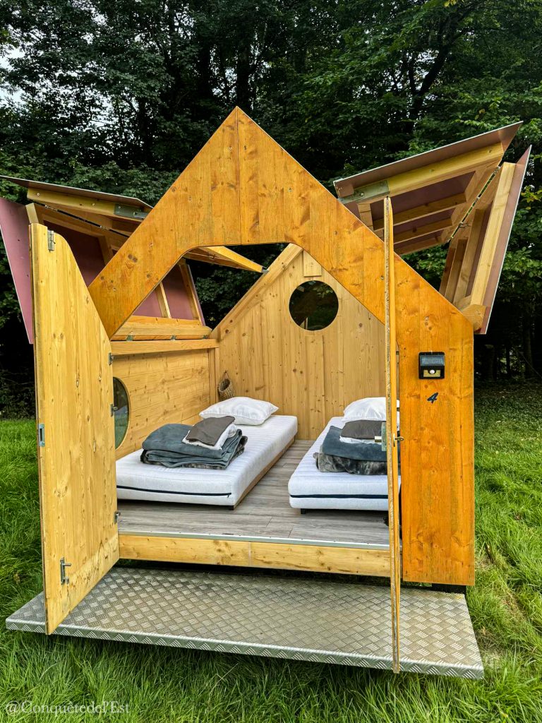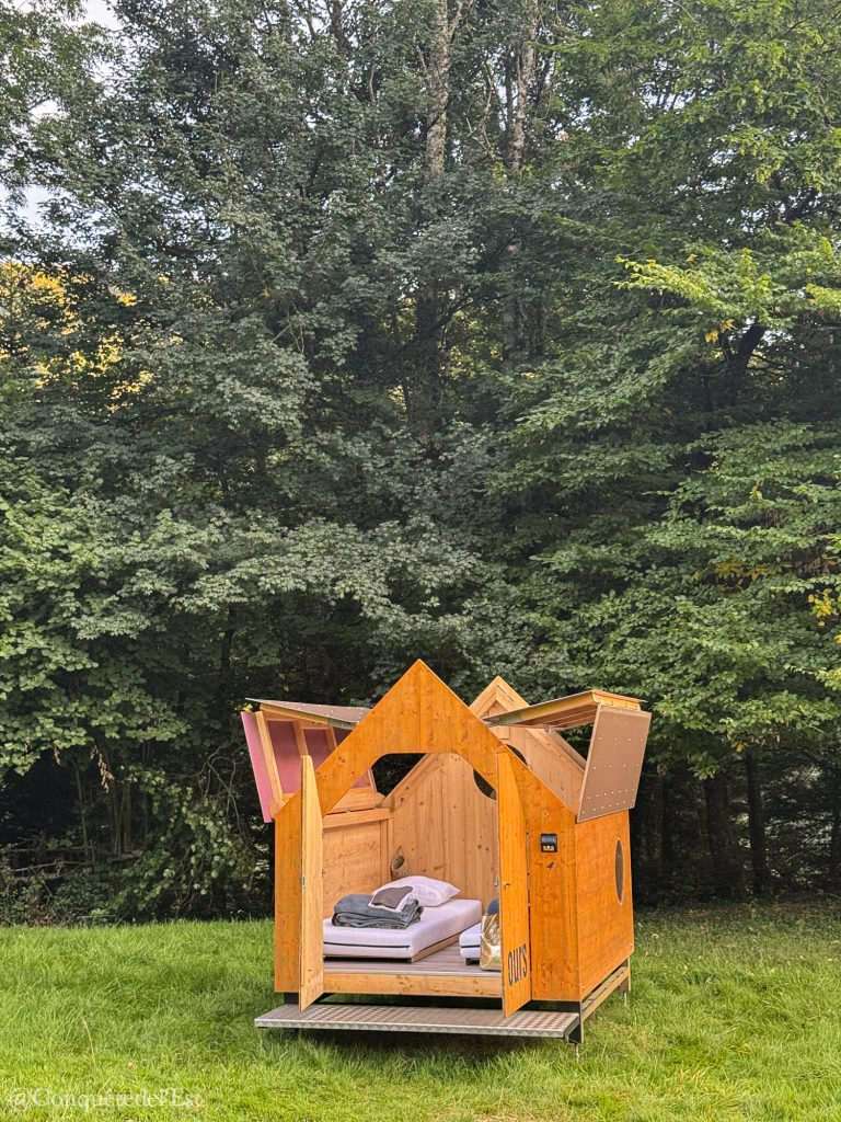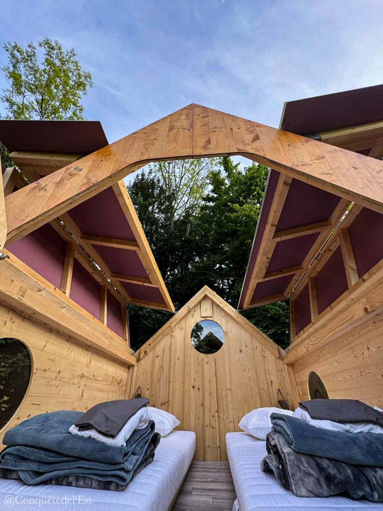 Et ces cabanes, elles ont un toit particulier. Il s’ouvre ! Chez Ours, le principe est simple : dormez à la belle étoile ! Franchement, on a adoré le concept. Ces petites cabanes toutes mignonnes avec leurs toits qui s’ouvrent sur le ciel et les étoiles, on est fans ! Imaginez, vous vous allongez et pour vous endormir, juste le ciel et à compter les étoiles. En plus, on est au milieu de la campagne, aucune pollution lumineuse donc un ciel pur et dégagé. C’est magique !