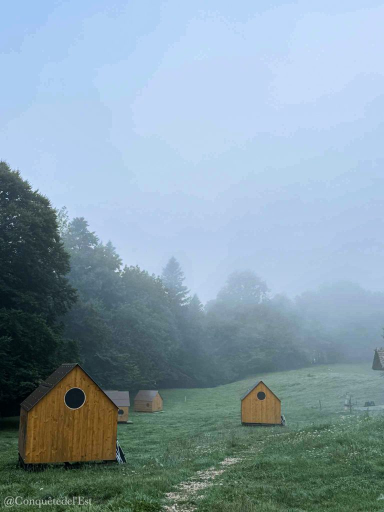 Le matin, vous avez la possibilité de prendre le petit déjeuner sur place et là encore, on a été épaté par le petit déj proposé, un ptit buffet comme dans les hôtels et on sait qu’on est en Suisse quand on a du gruyère jurassien et de l’Ovomaltine sur la table ! On s’est régalés ! Oh, le matin ! Quel spectacle incroyable de se réveiller avec le brouillard qui encercle les cabanes, ambiance mystique garantie !