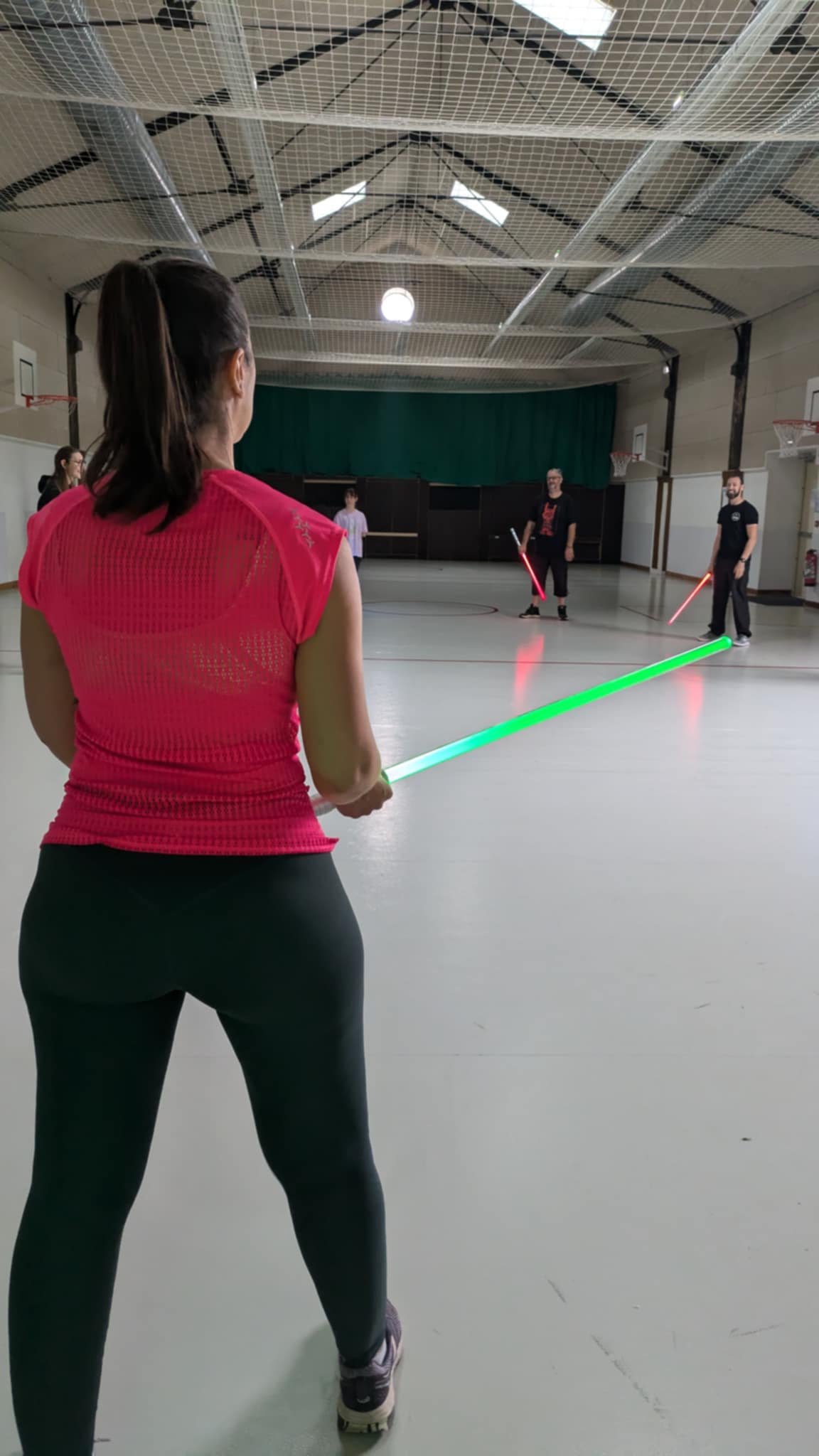 Il faut savoir qu’on arrive dans ce milieu avec zéro connaissance dans le domaine. Pour vous donner une idée de notre niveau noobesque : ni Cécile ni moi n’avons JAMAIS regardé de film Star Wars de nos vies. Voila #pastaper. Nous avons donc pu constater par nous même qu’il n’y a pas besoin d’être un grand fan de la saga pour venir pratiquer, tout le monde est accepté, à partir de 16 ans jusqu’à… ce que ne vos articulations ne vous le permettent plus 😉 La licence est à 75€ l’année en tarif plein, et deux entraînements sont proposés chaque semaine : le jeudi soir et le dimanche matin.