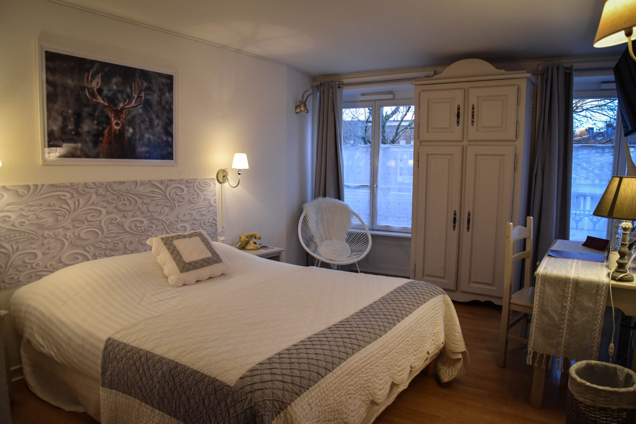 Dès le hall d’entrée, on comprends que cet hôtel à quelque chose de particulier, de par son charme et son histoire. En effet, il fait partie des plus anciens hôtels de Franche-Comté, puisque les premières traces d’une auberge ici datent de 1559 (!). Cependant, ce n’est pas le confort qui manque : l’hôtel est classé 3 étoiles et Clef Verte, un label de tourisme durable. Pour découvrir ma chambre au deuxième étage, j’emprunte volontiers les grands escaliers en bois tellement ils sont beaux ! Dans la chambre : des tons clairs, une déco sobre avec quelques touches qui rappellent la saison ou le caractère historique de la maison (comme ce petit téléphone au style vintage que j’ai adoré !).